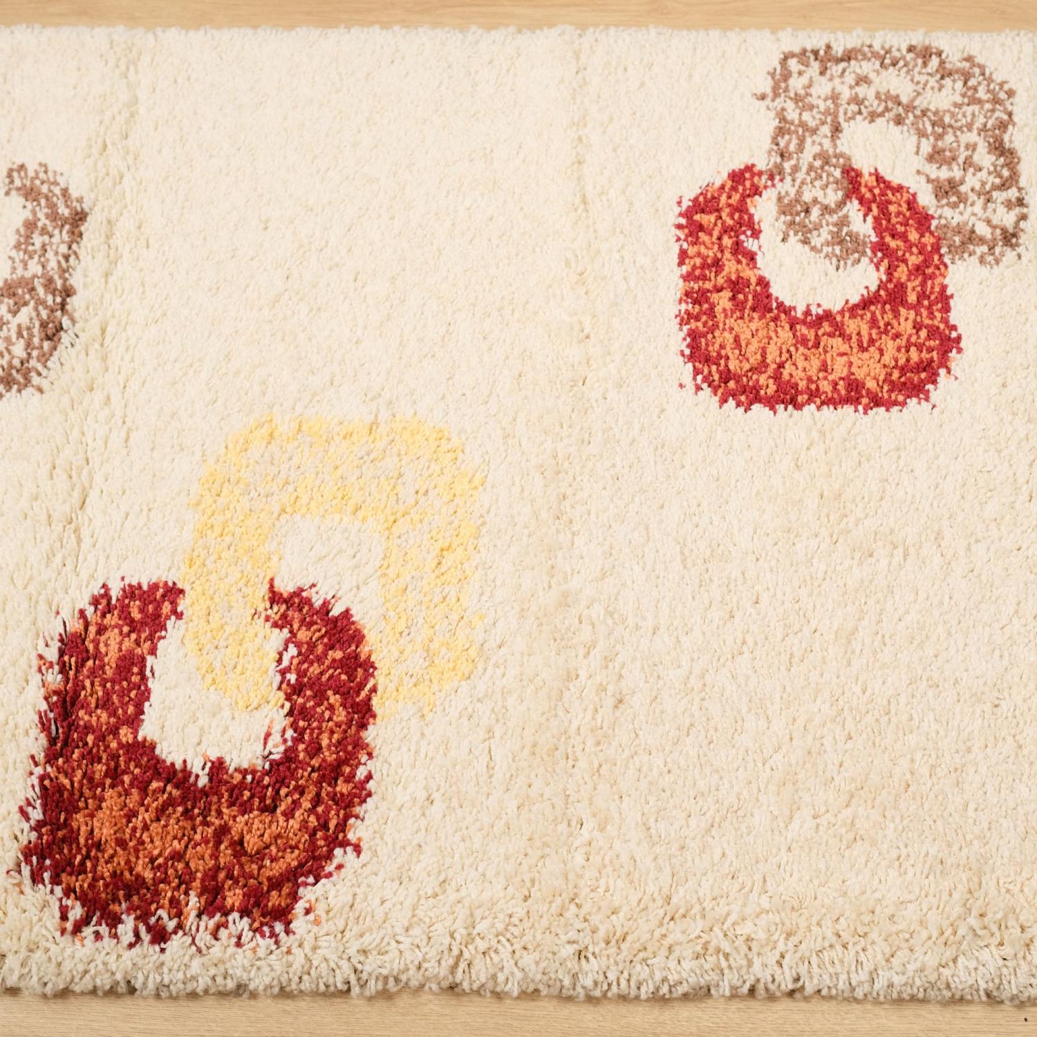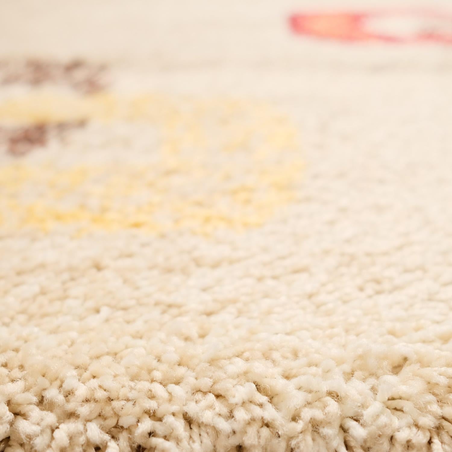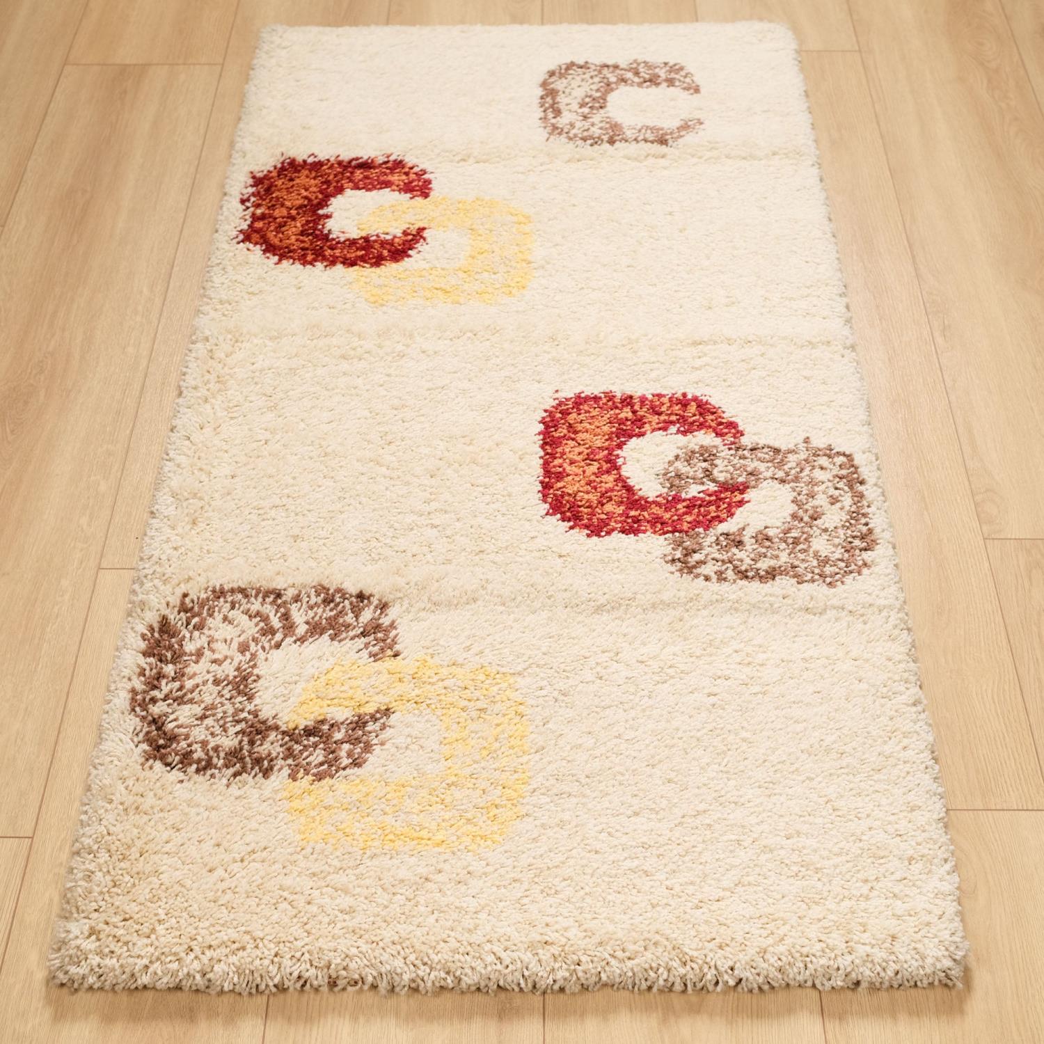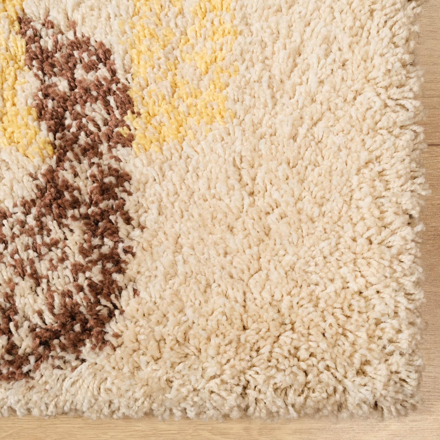 Kahverengi Krem Turuncu Tüylü Tasarım Geometrik Desenli Sentetik Makine Dokuma Halı