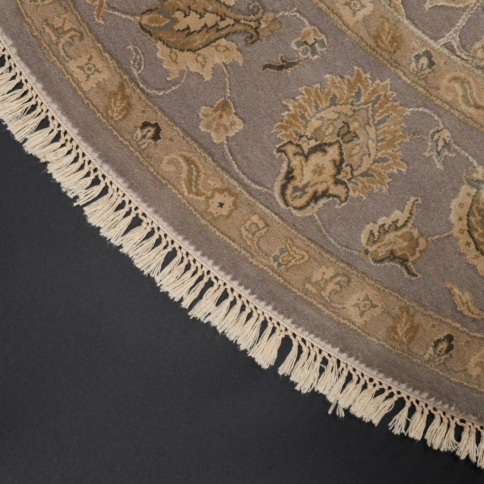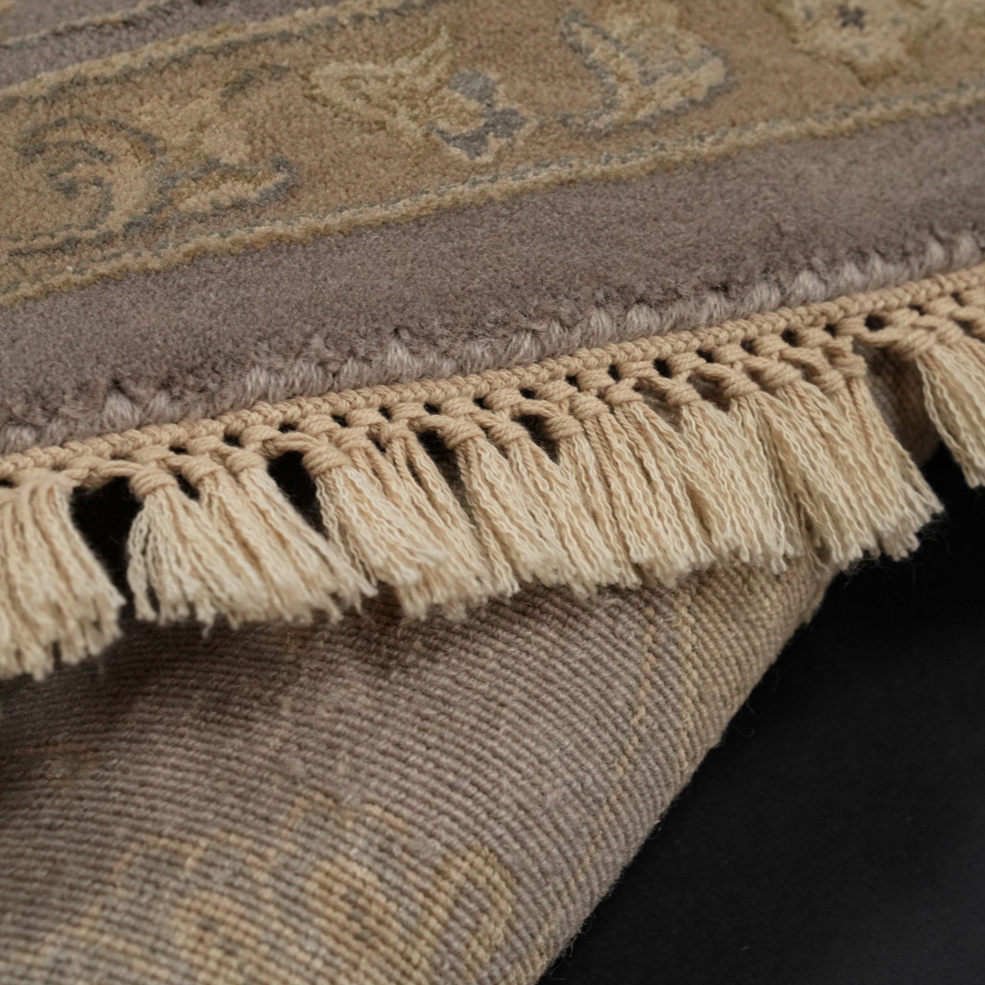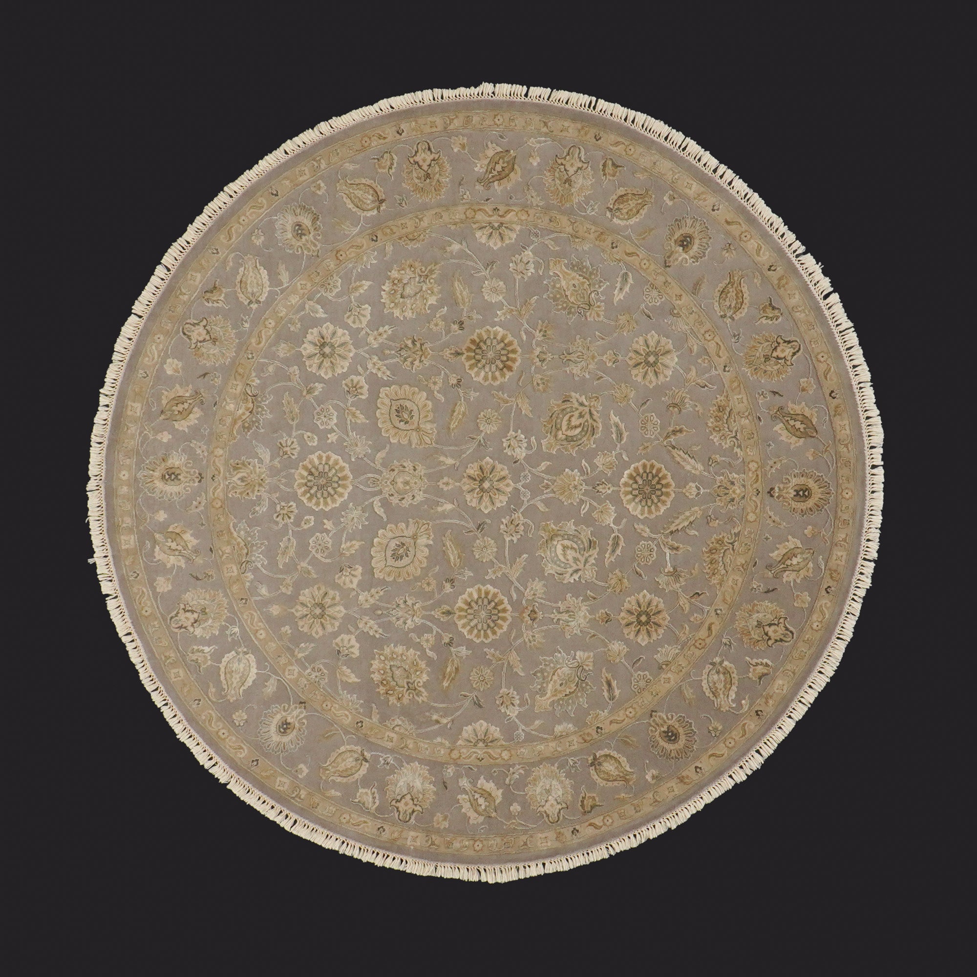 Jaipur Serisi El Dokuma Uşak Desenli Gri İpekli Halı, gri tonun zamansız şıklığını yumuşak bej ve krem tonlarındaki ipek desenlerle dengeler. Dairesel formu ve 183 x 183 cm ölçüsü, onu özellikle merkezde odak yaratmak istenen alanlar için ideal kılar; yuvarlak masa altlarında ya da geniş antrelerde zarif bir duruş sergiler. Motifler ince ince işlenmiştir, her biri birer küçük sanat eseri gibi yüzeye yayılır. Renk geçişleri, ışığa bağlı olarak değişen ipek yansımalarıyla zenginlik kazanır. Sakin bir gösteriş sunar; güçlü bir geçmişi, sade bir dille anlatır.