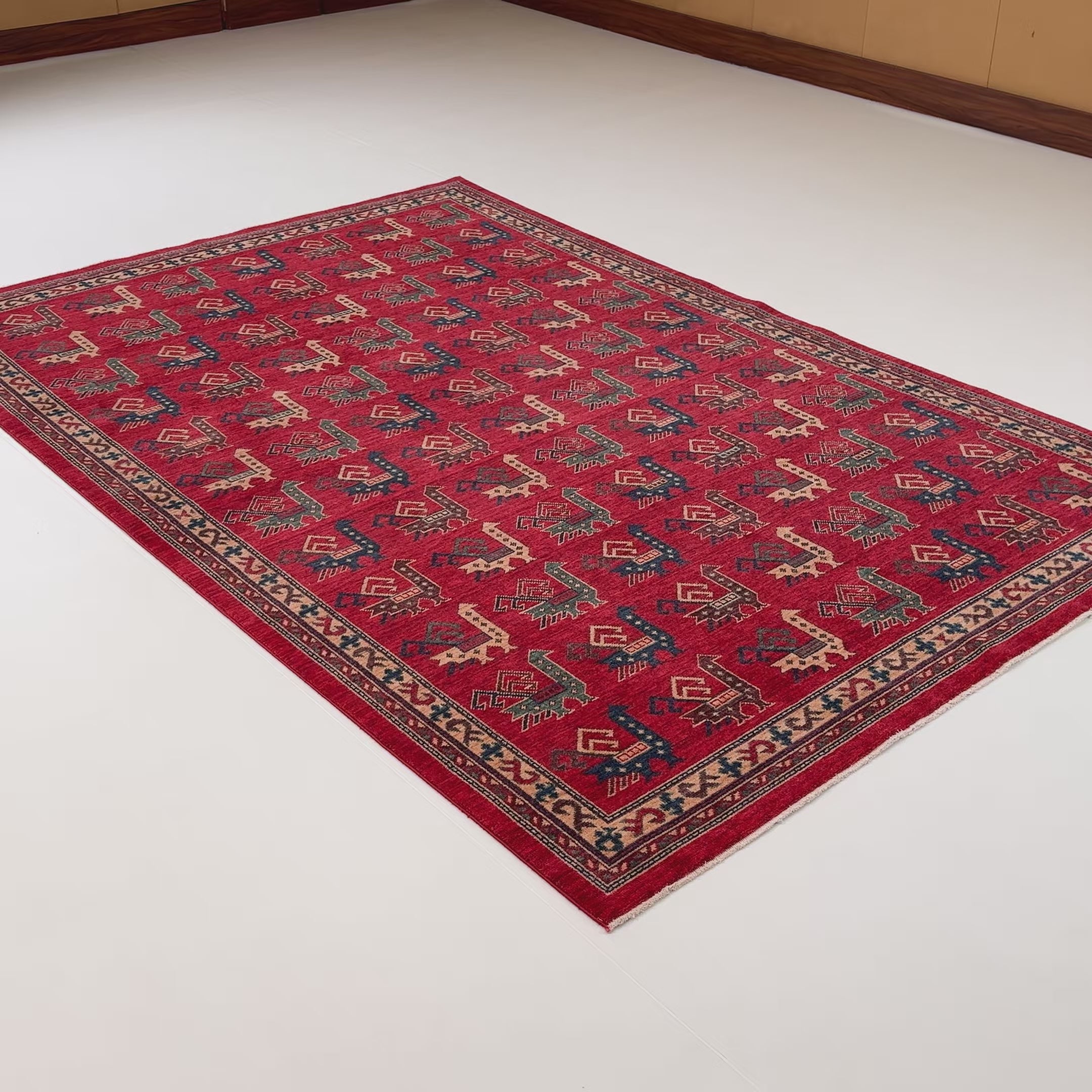 Kadim Serisi Anadolu Desenli Kırmızı Yün Tezgah Dokuma Halı