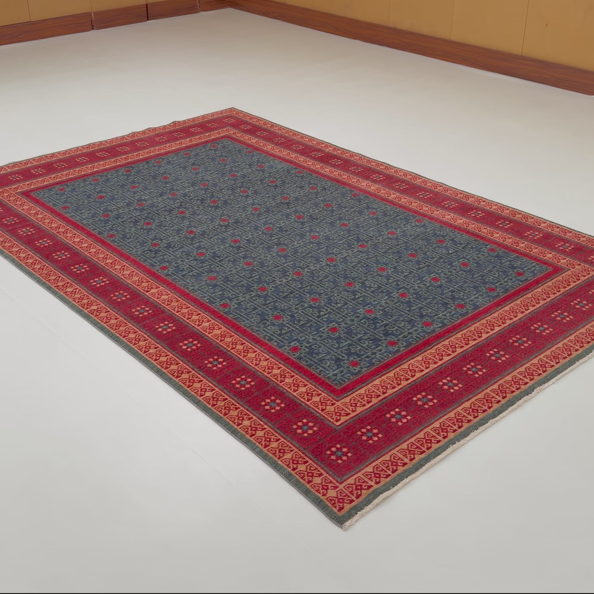 Kadim Serisi Anadolu Desenli Yün Mavi Tezgah Dokuma Halı