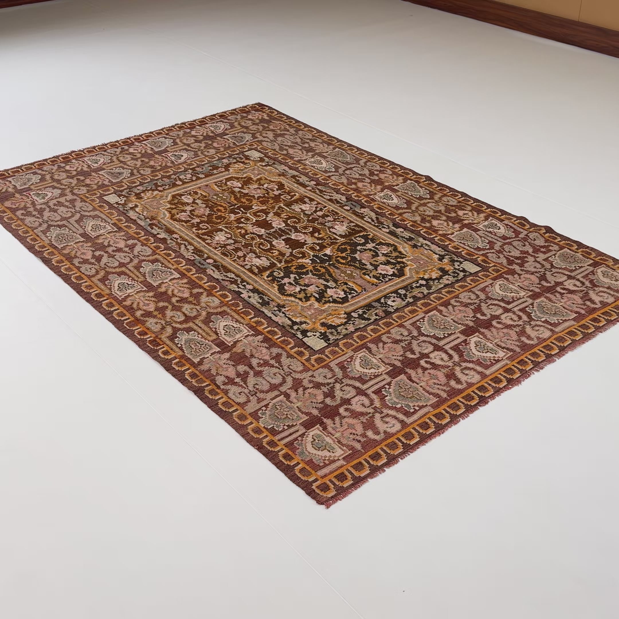 Karabağ Desenli El Dokuma Kahverengi Kilim