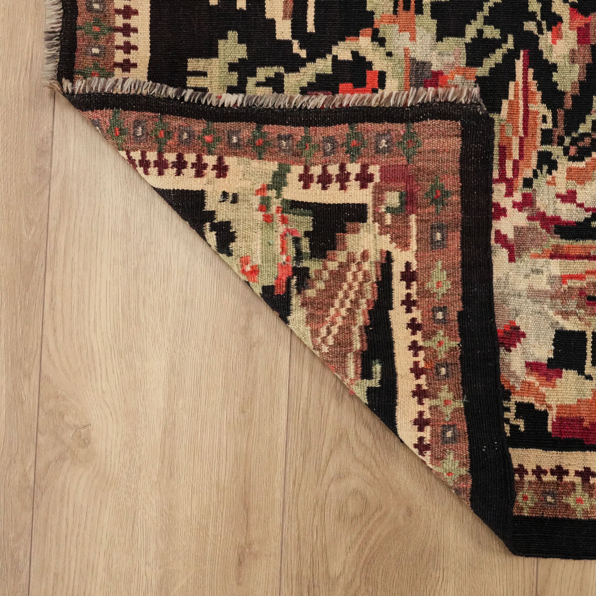 Karabağ Desenli El Dokuma Siyah Yün Kilim