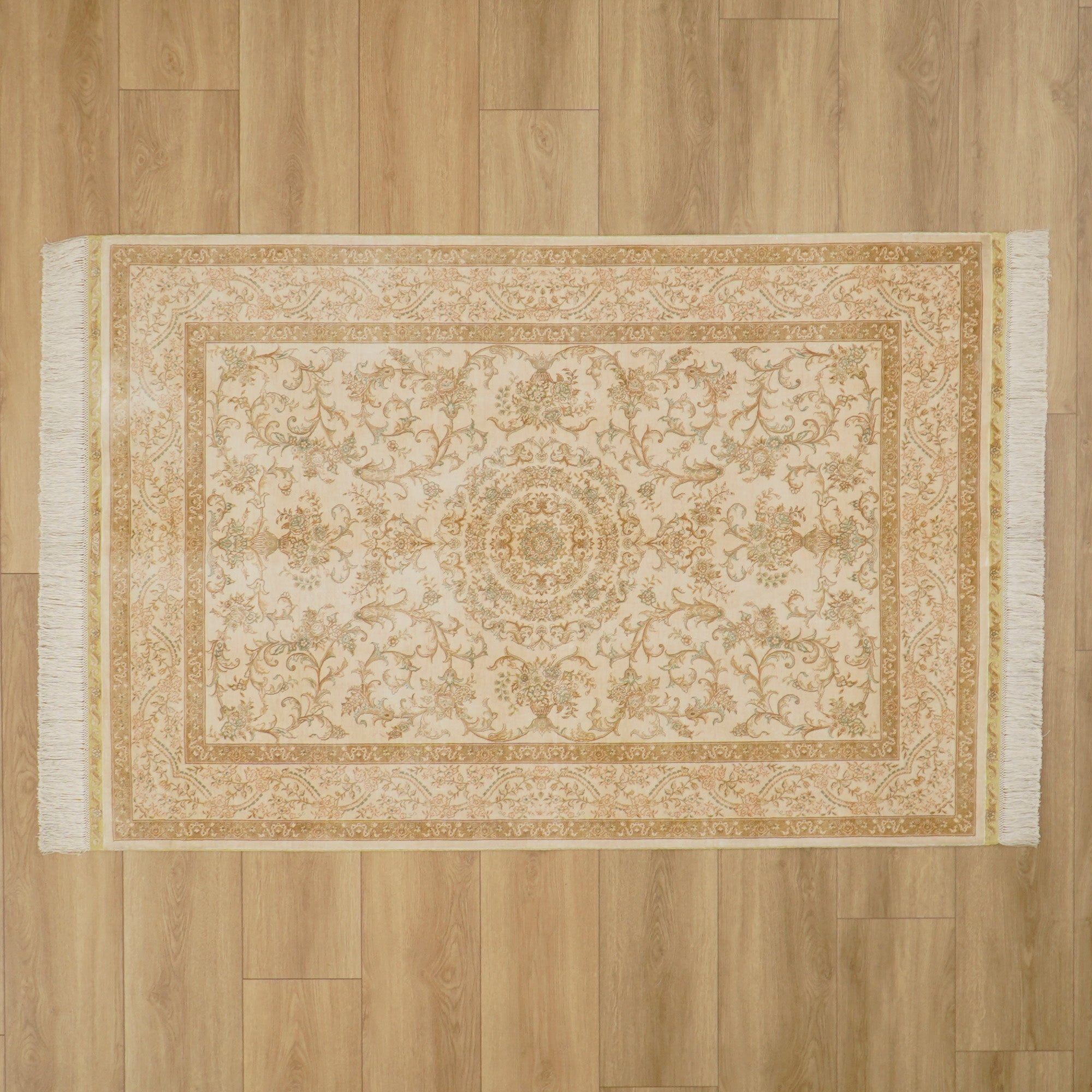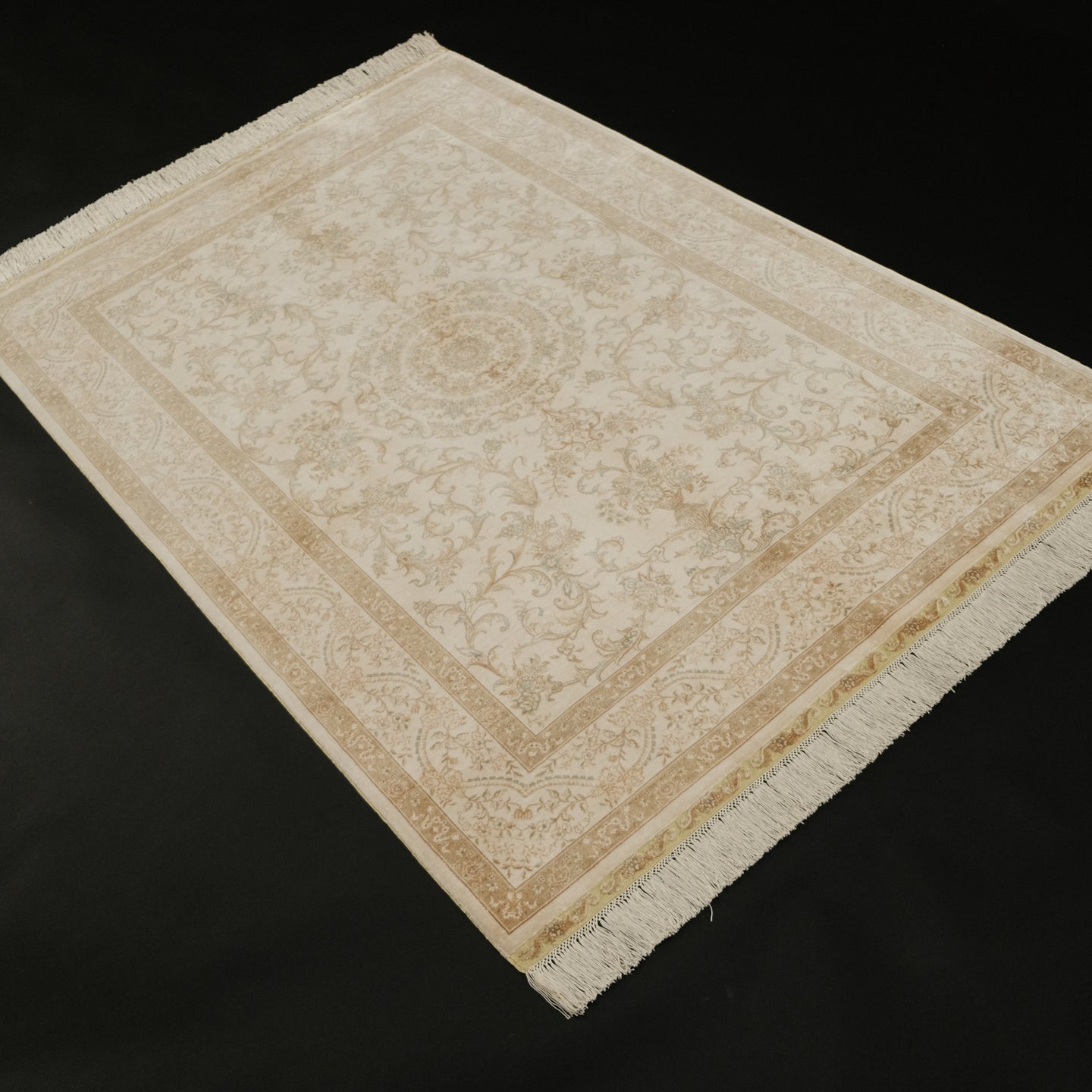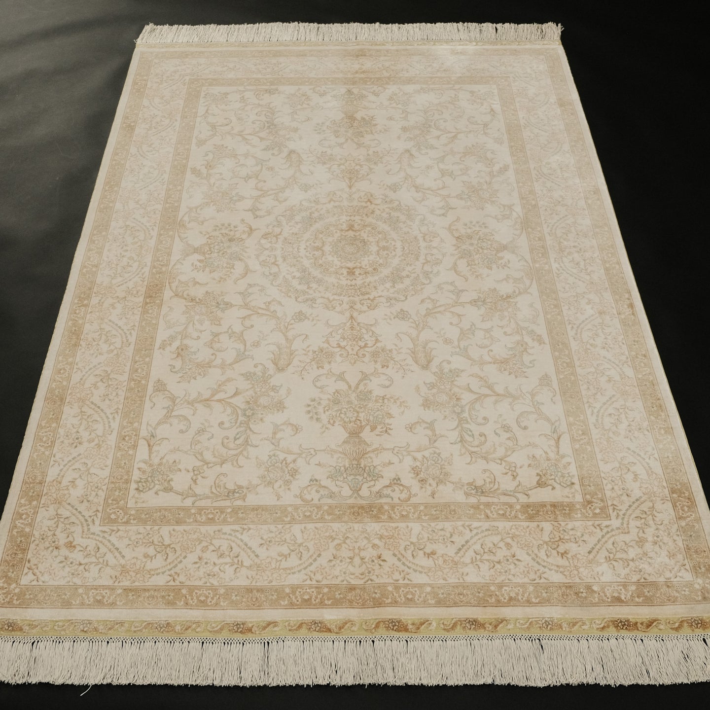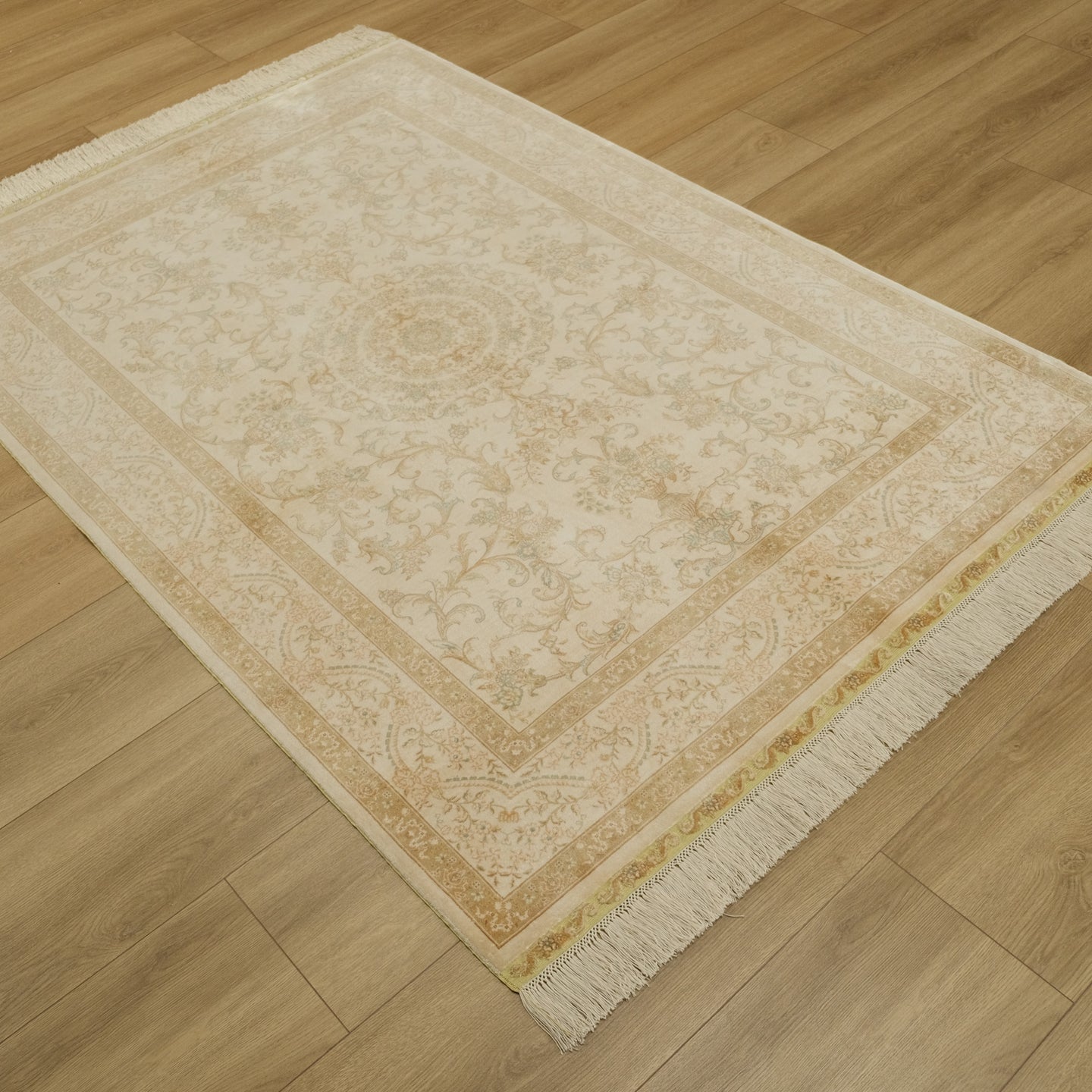 Madalyon Desenli Krem El Dokuma İpek Halı