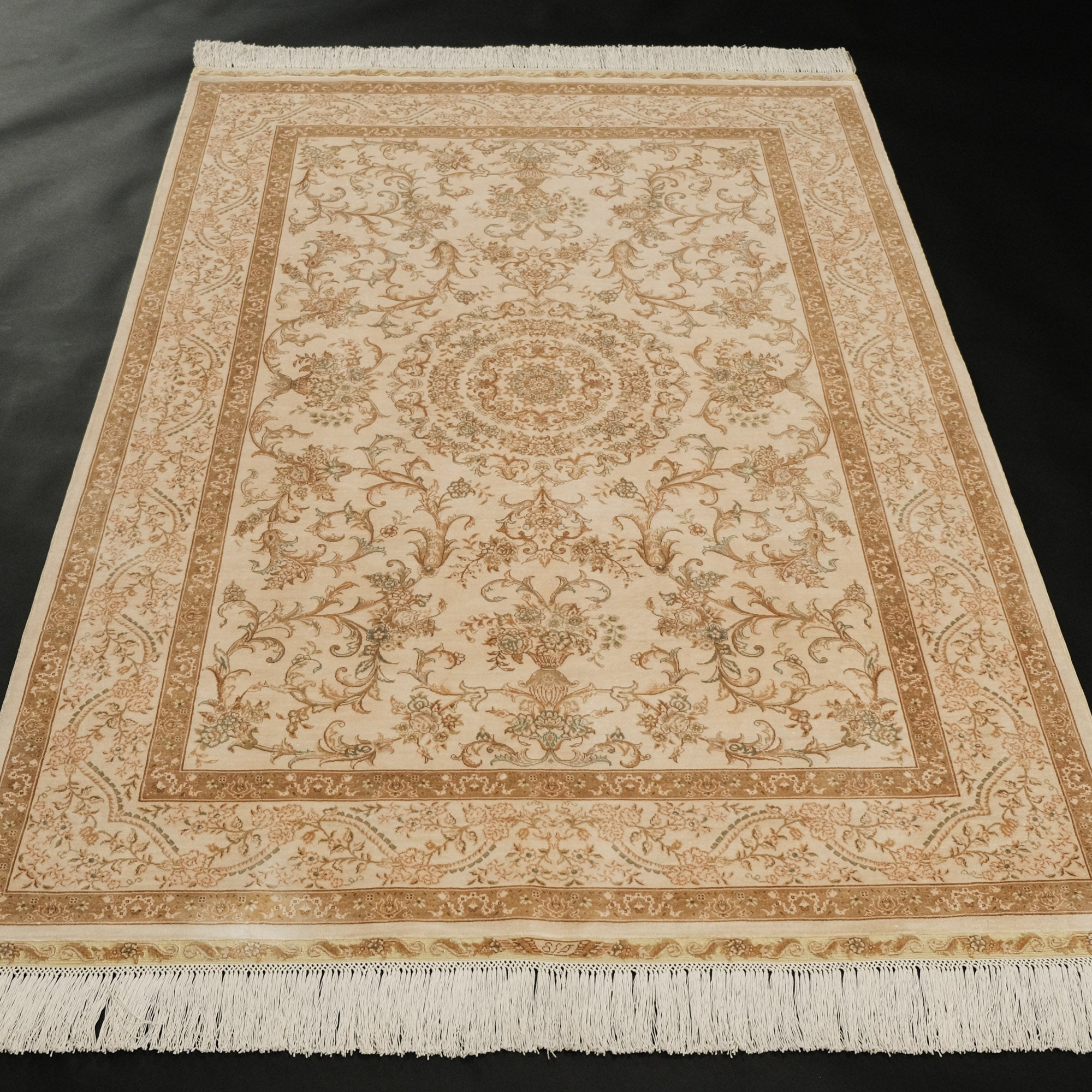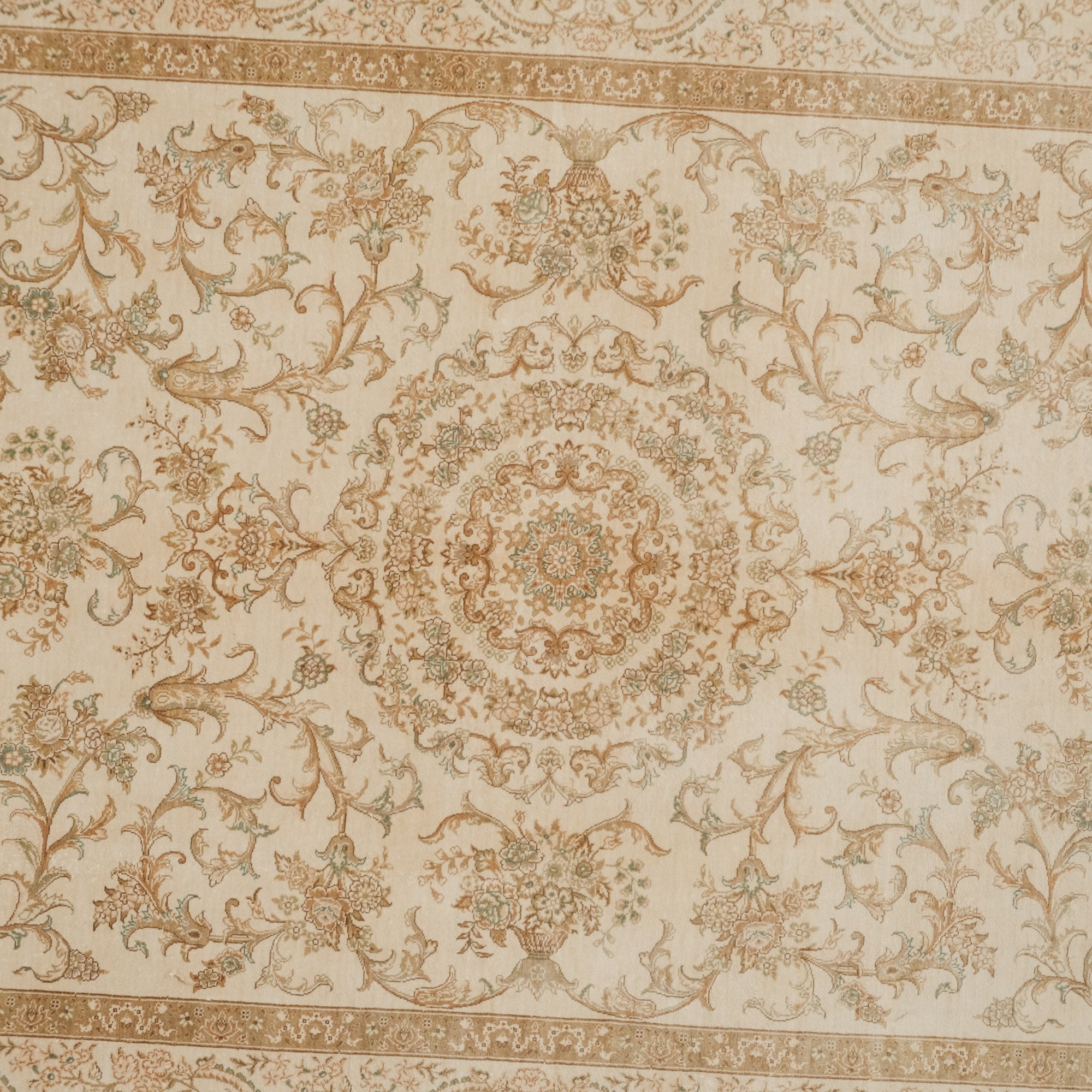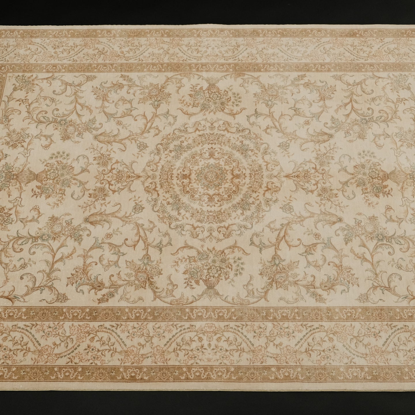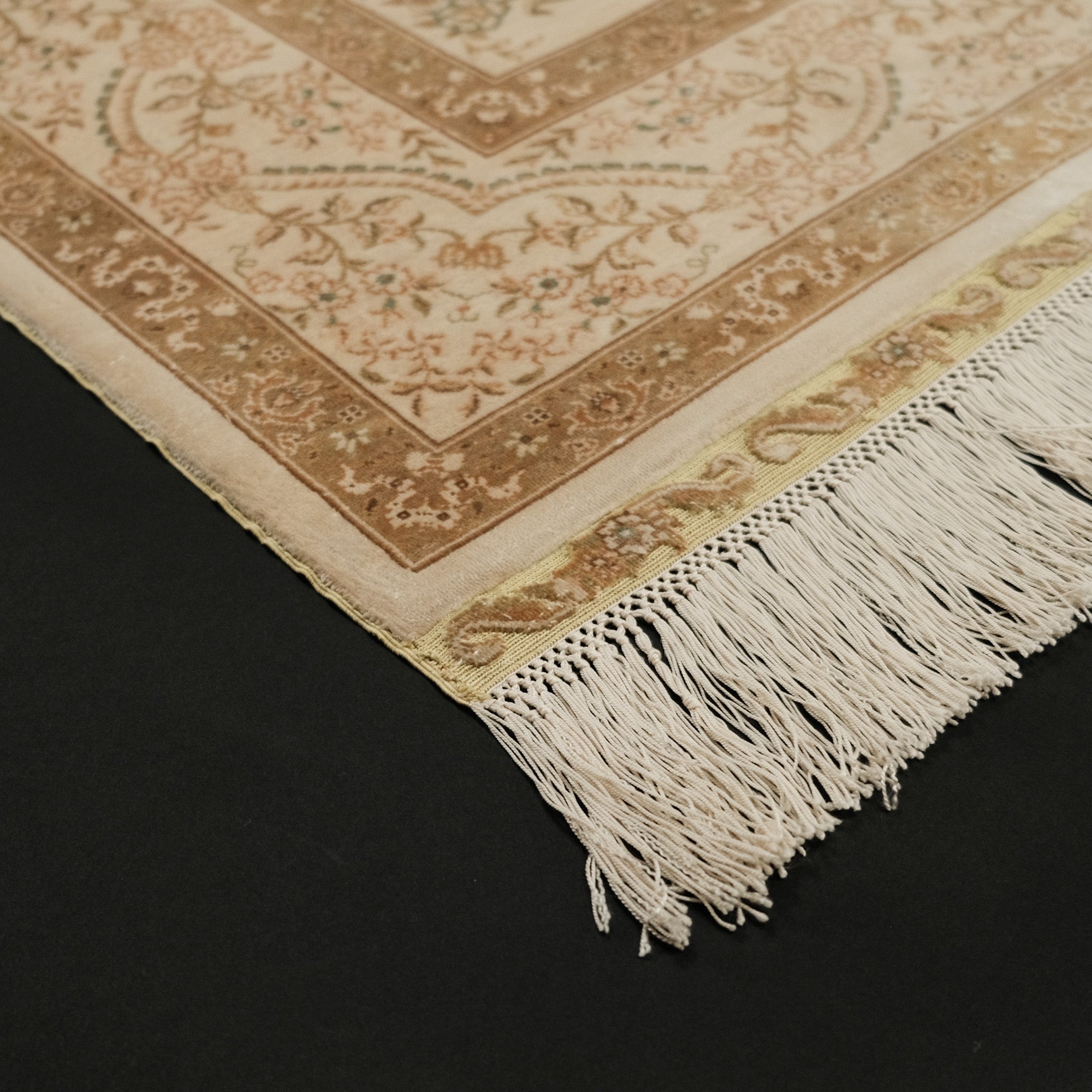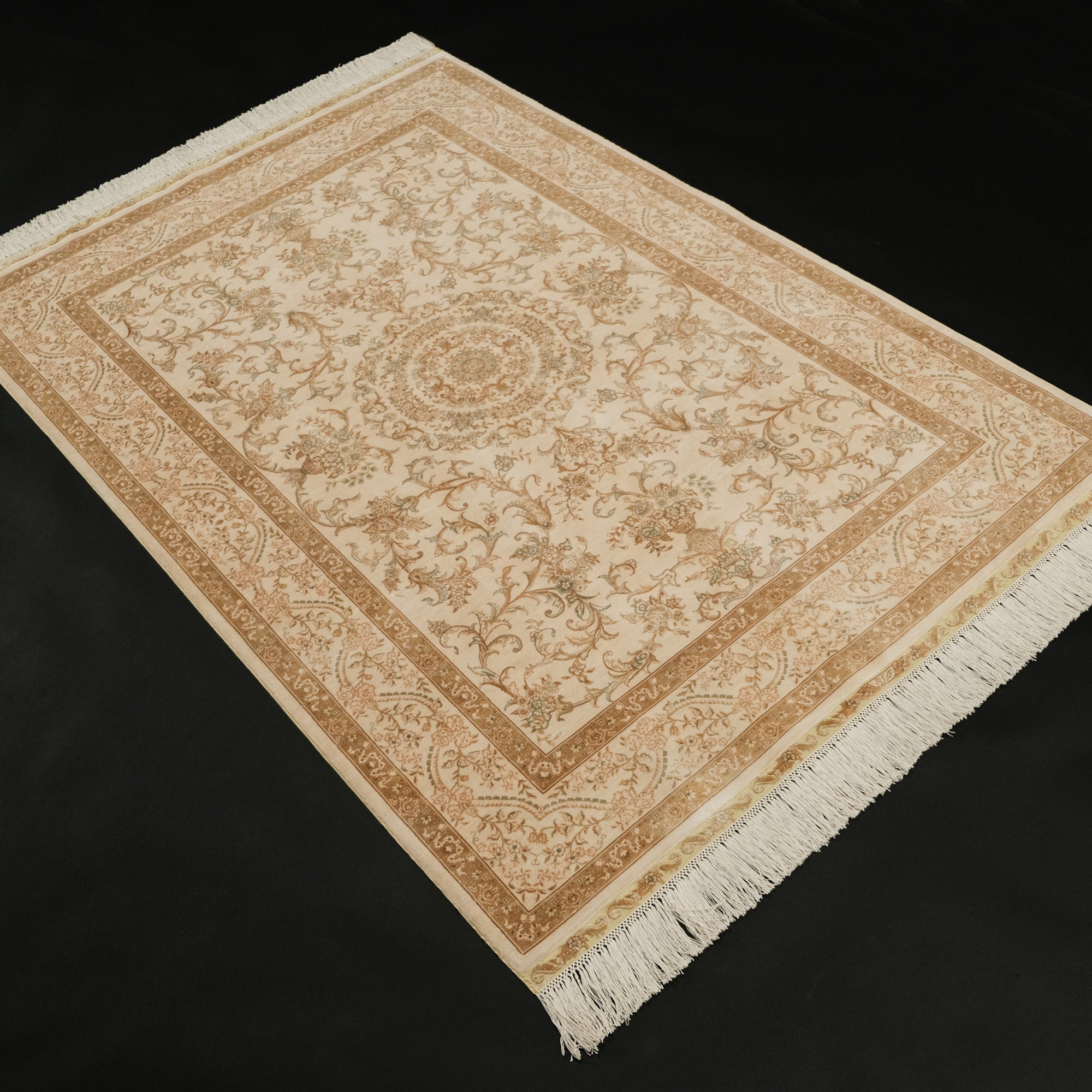 Madalyon Desenli Krem El Dokuma İpek Halı