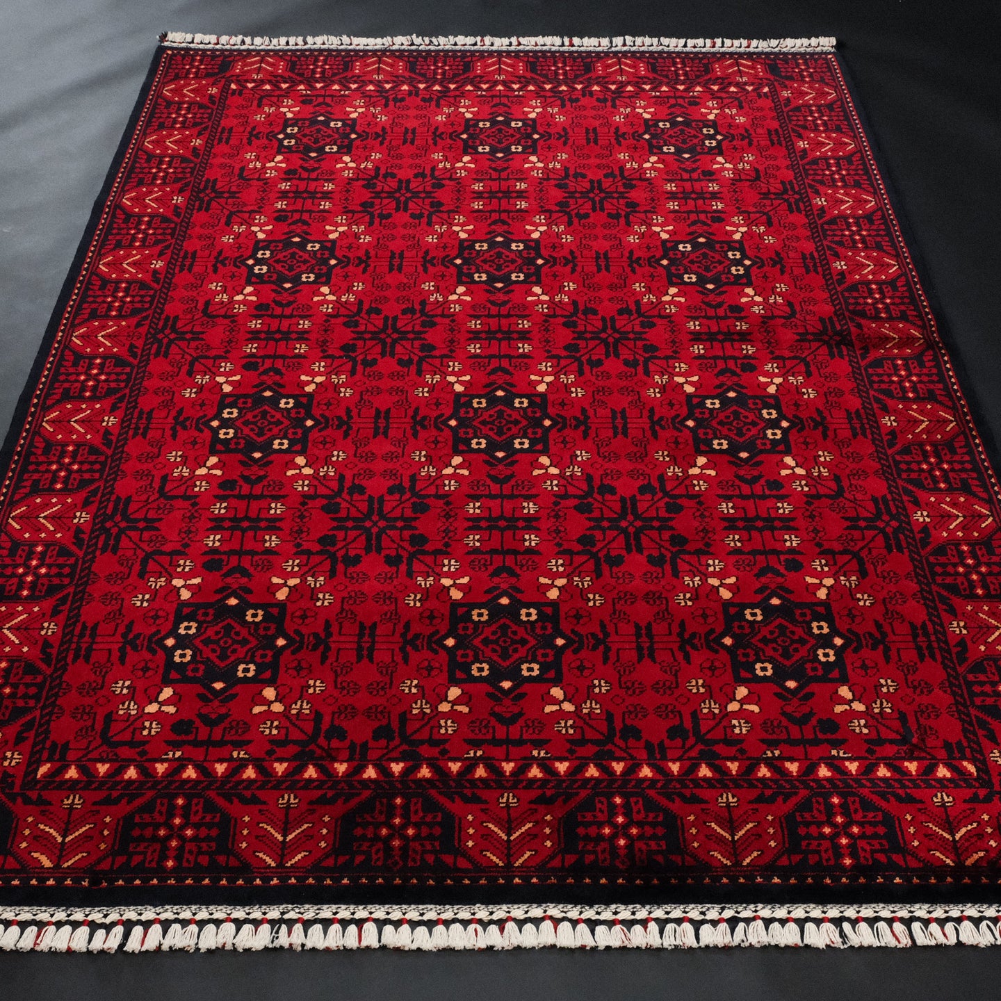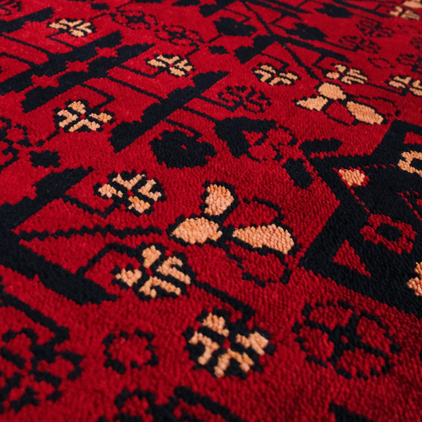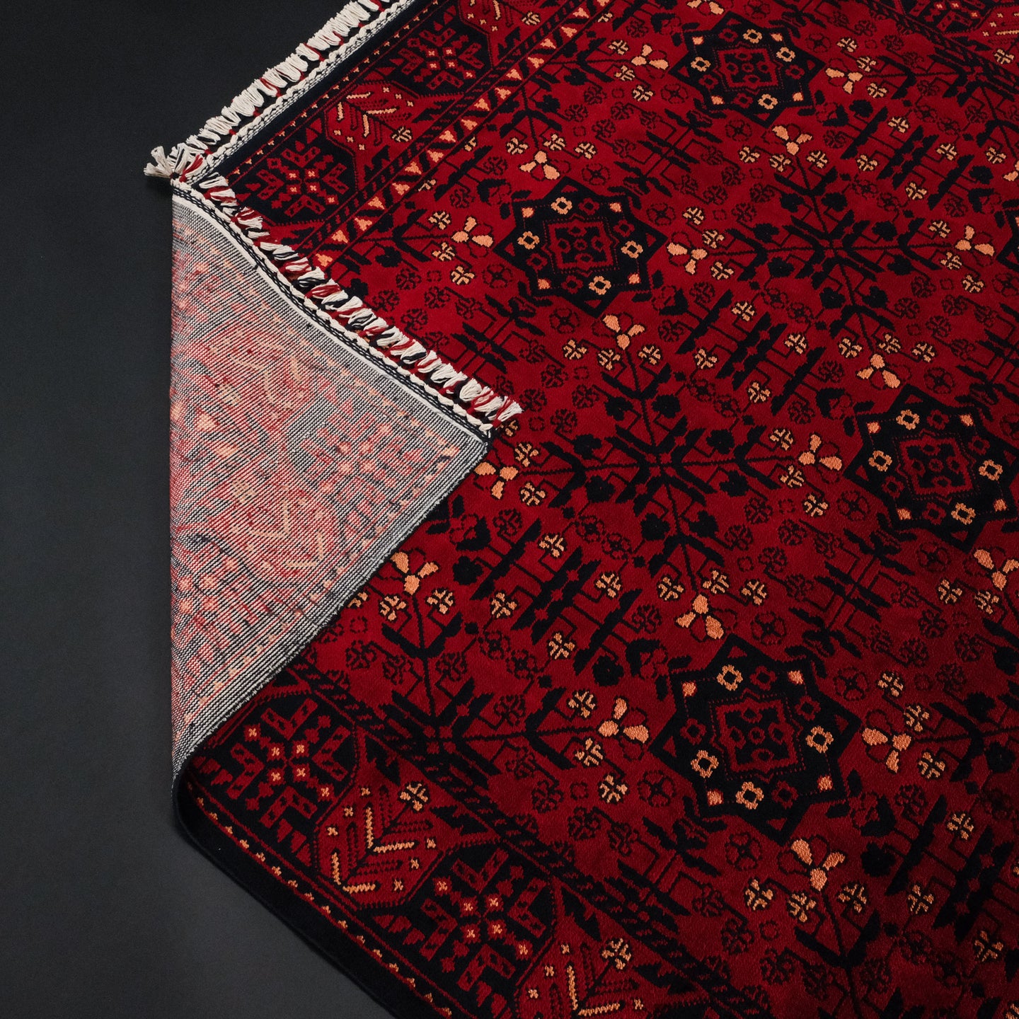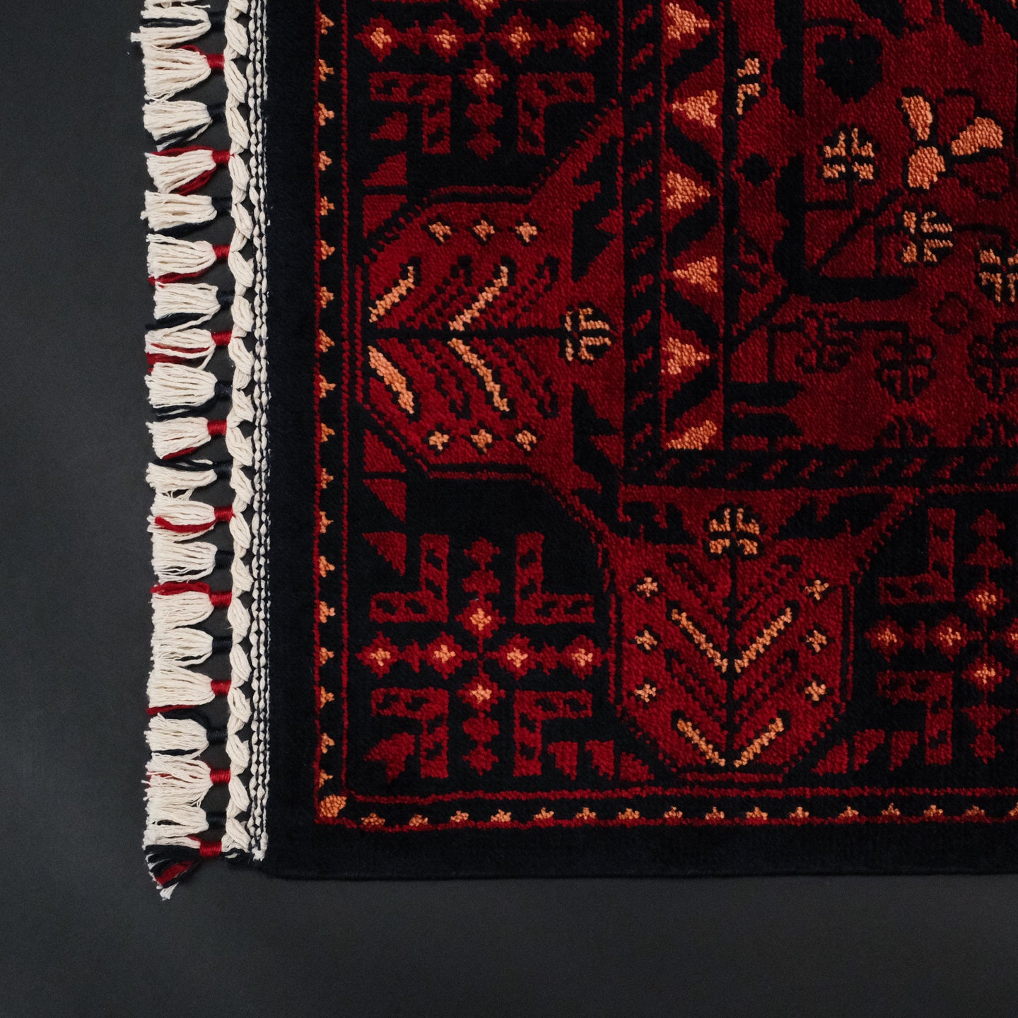 Nostalji Serisi Afgan Türkmen Desenli Bordo Tezgah Dokuma Halı