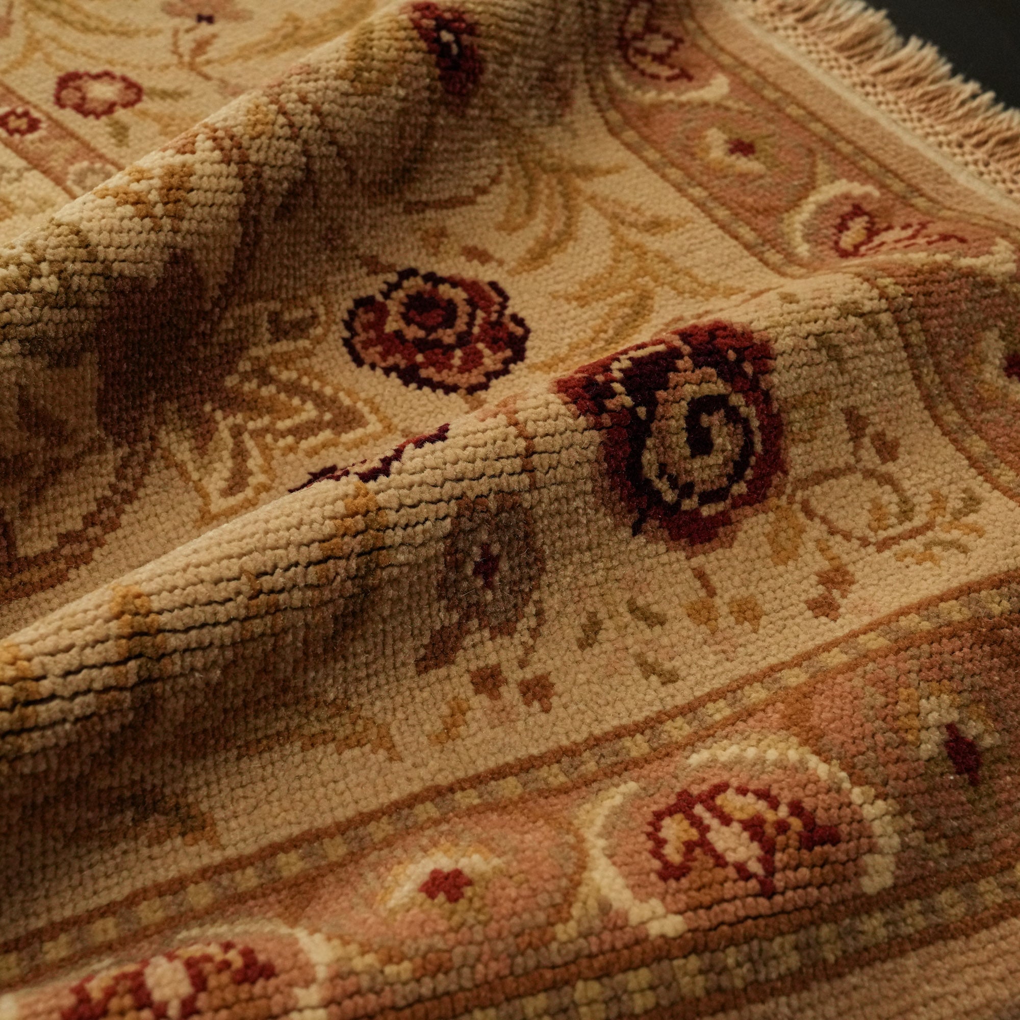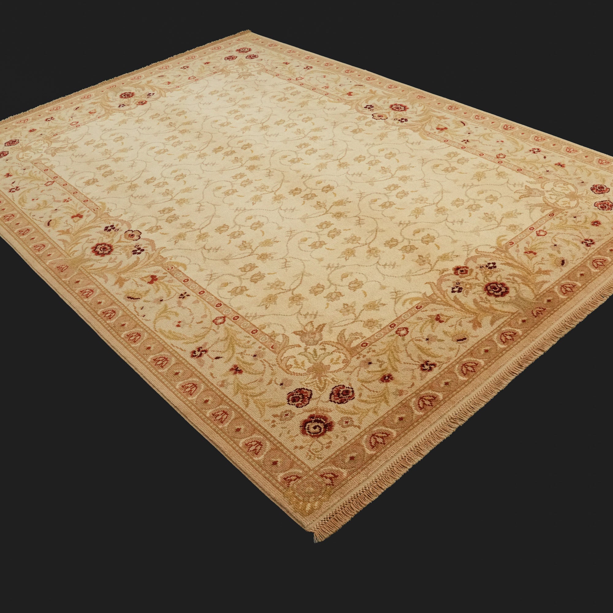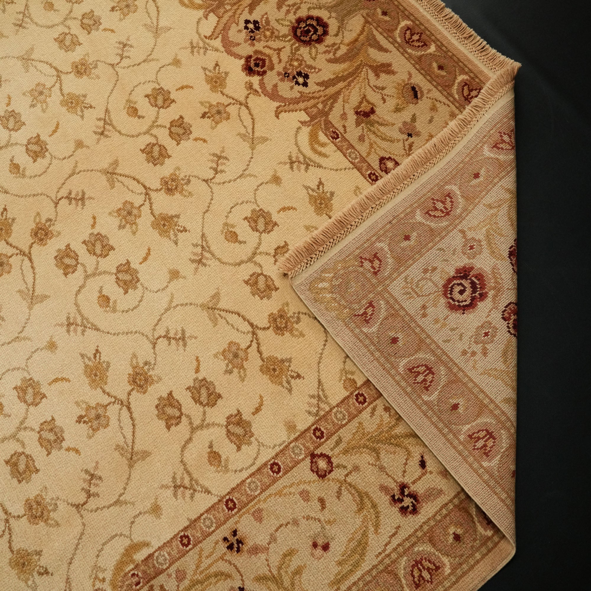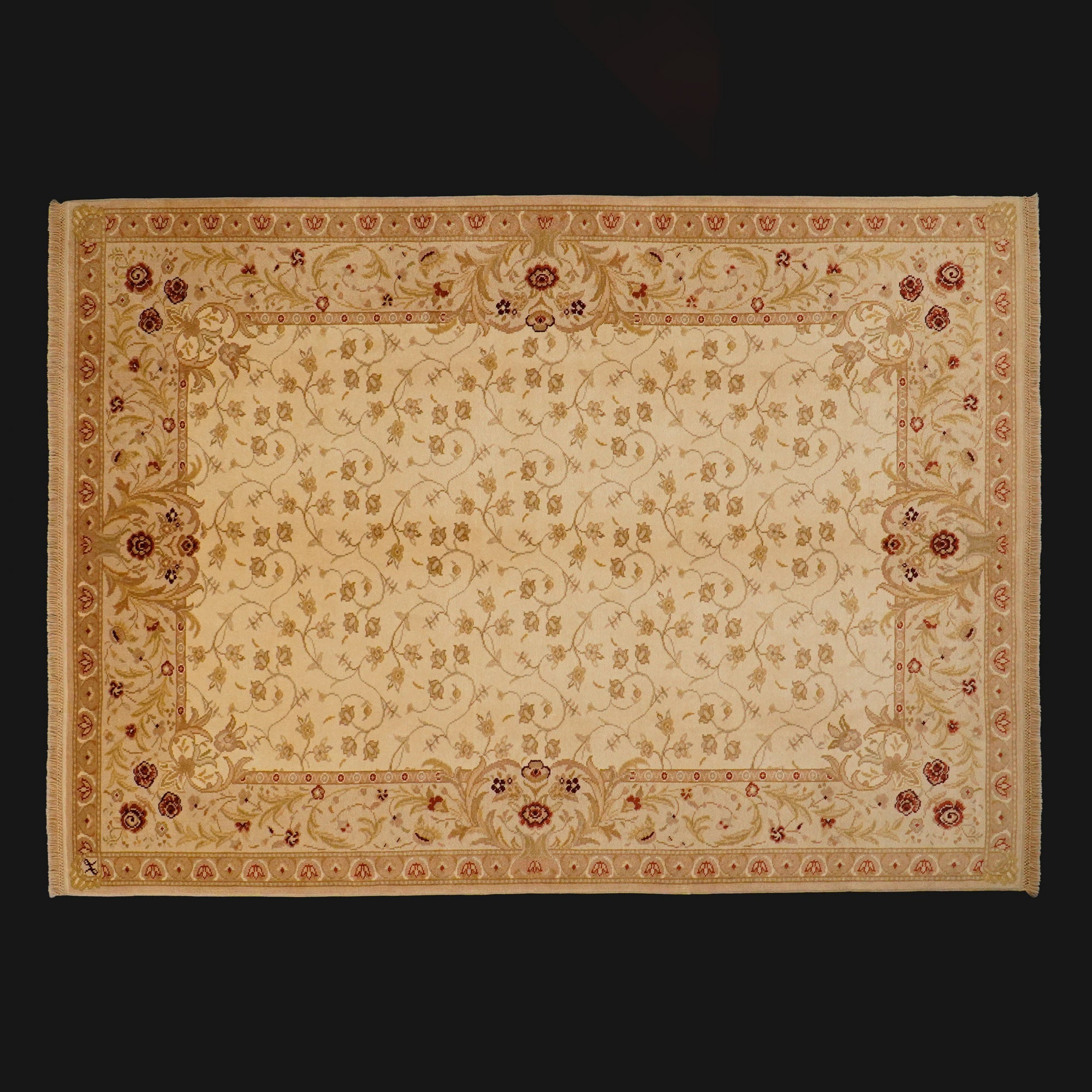 Ottoman Serisi El Dokuma Çiçek Desenli Krem Yün Halı
