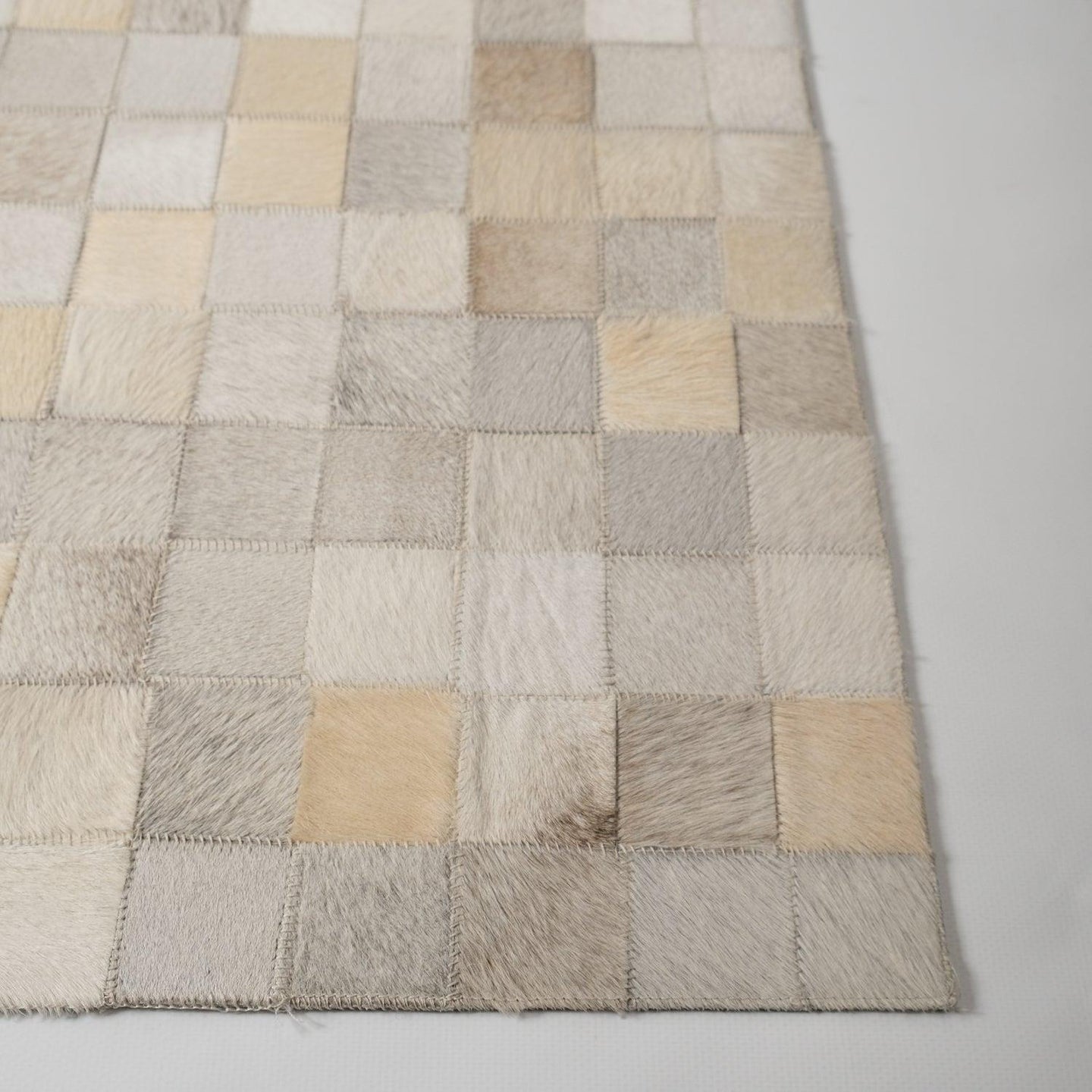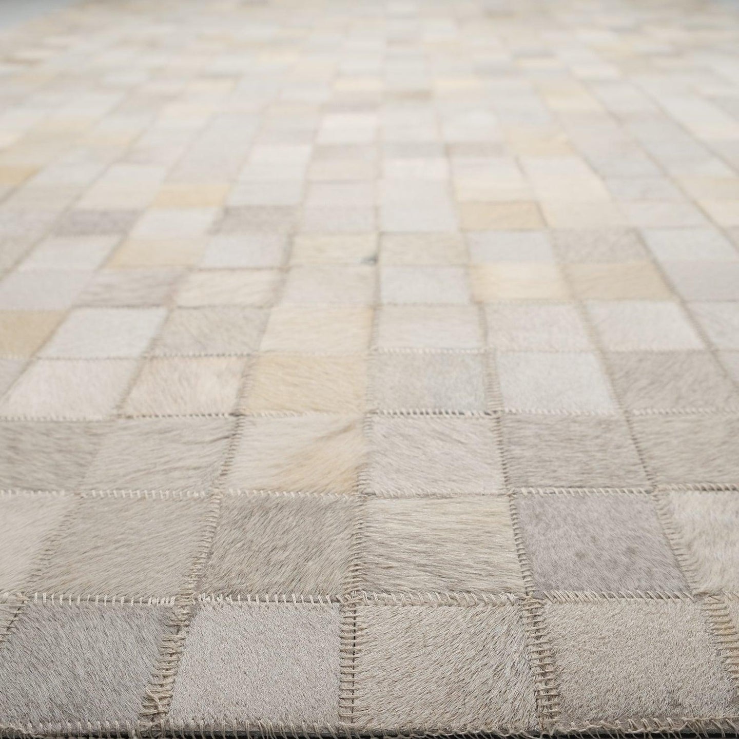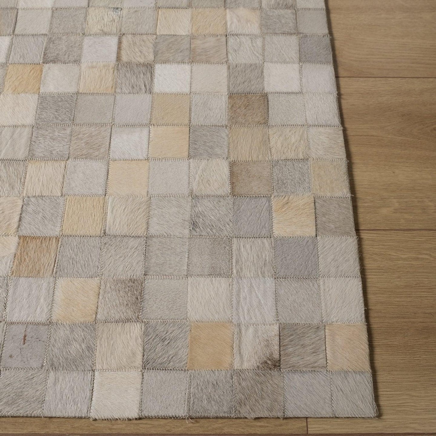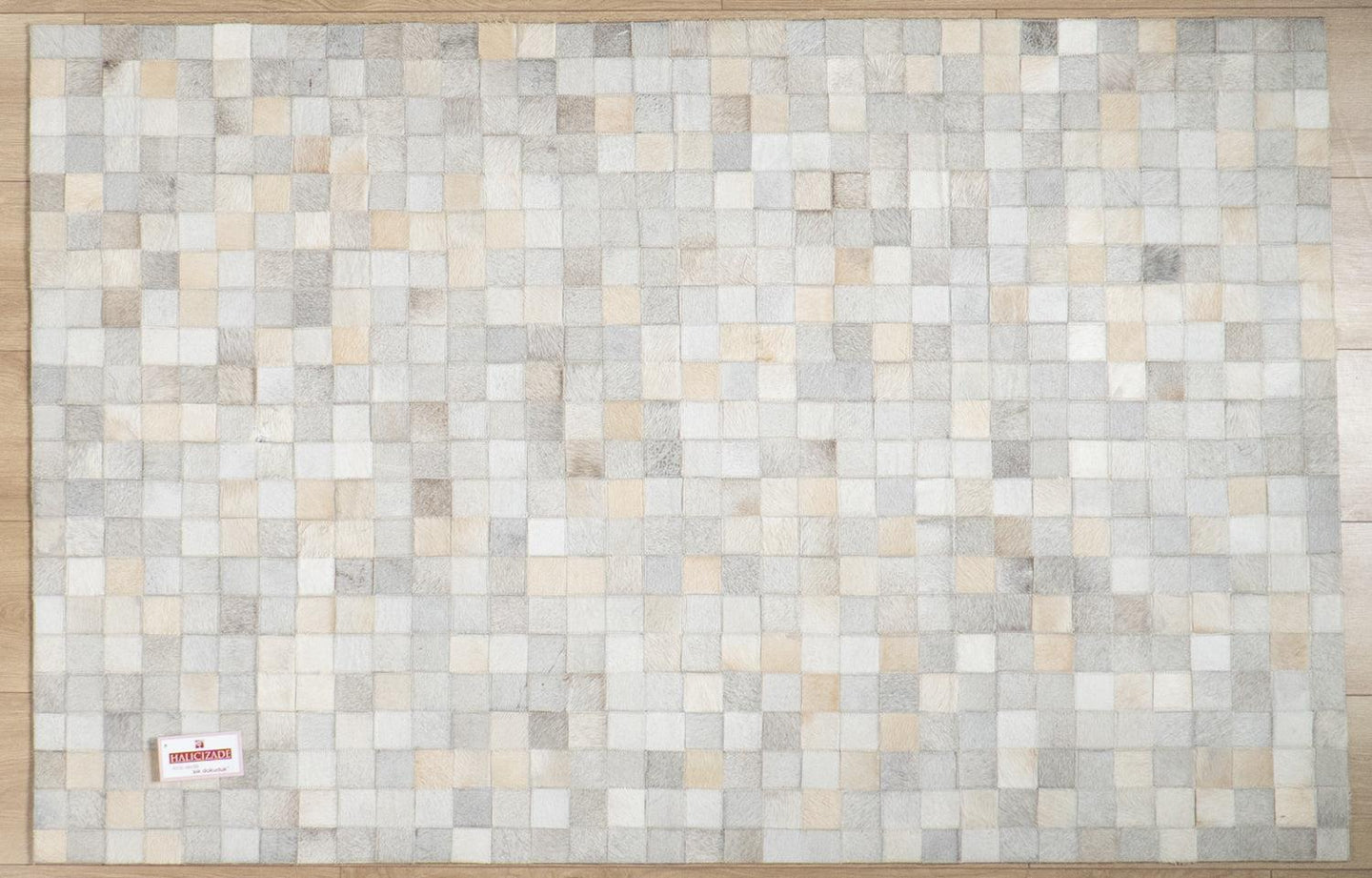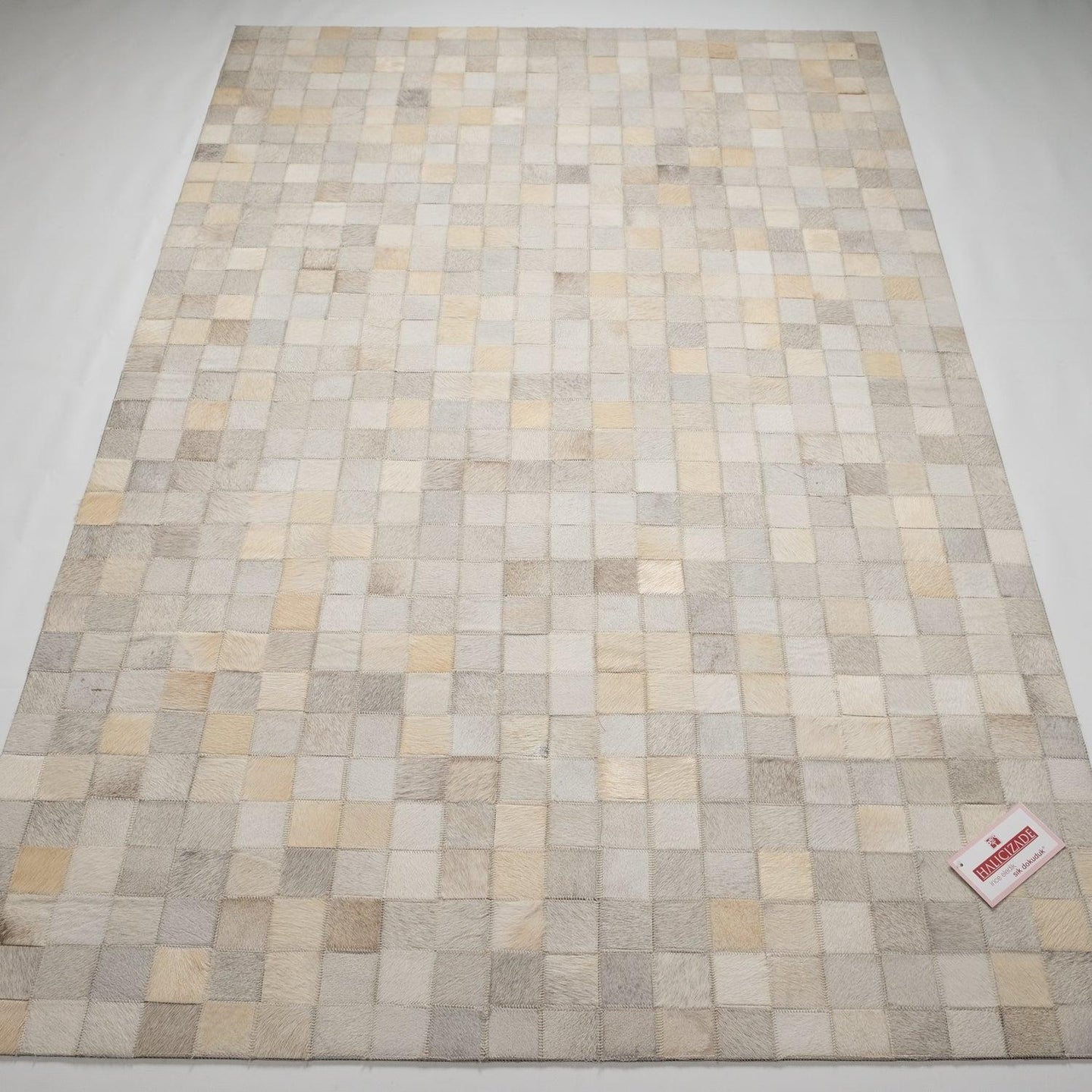 Vizon Krem Modern Tasarım Patchwork Desenli Deri - Post Halı
