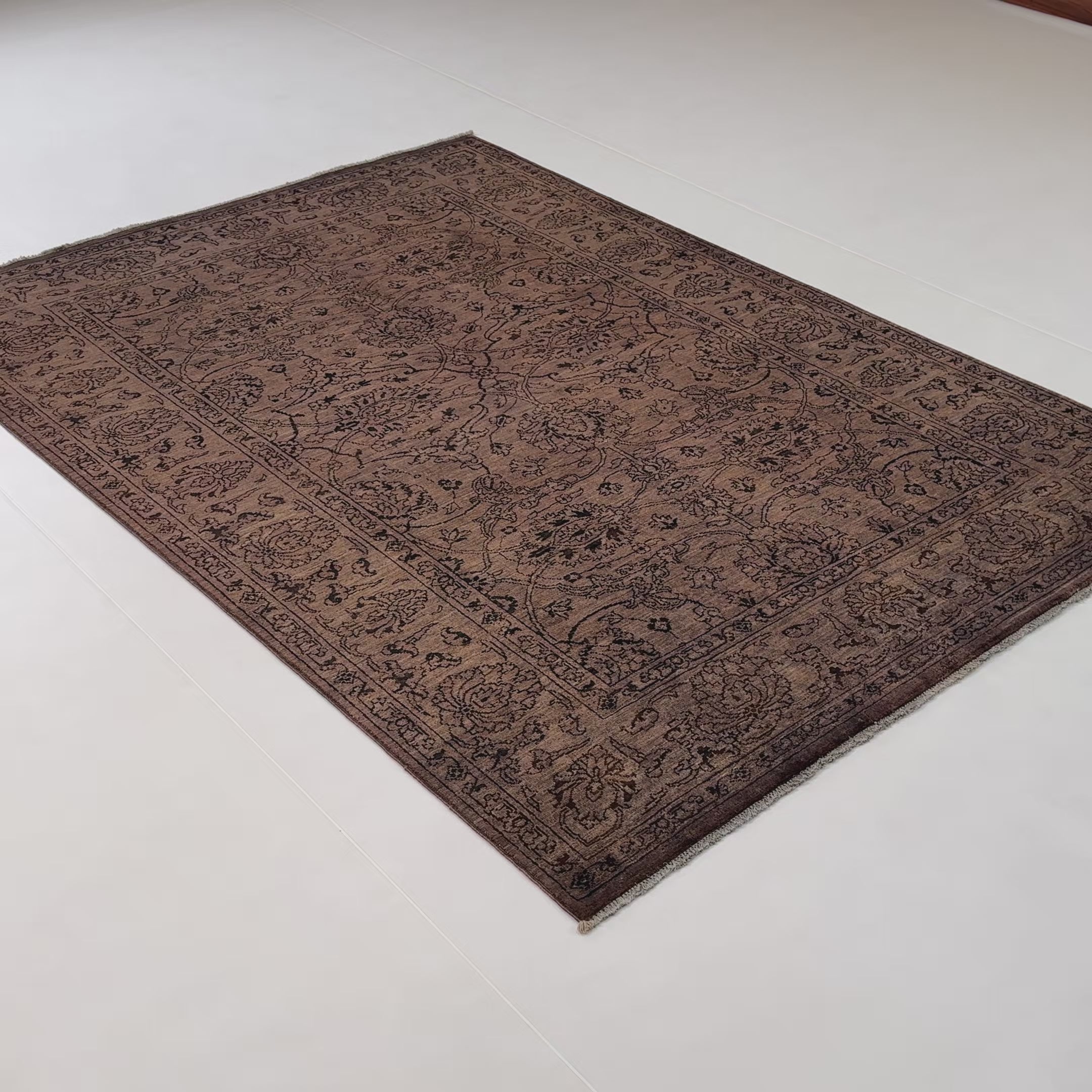- Özel yıkama ve iplik boyama teknikleri, halının hem parlak hem de derin kahverengi tonlara sahip olmasını garantiler.