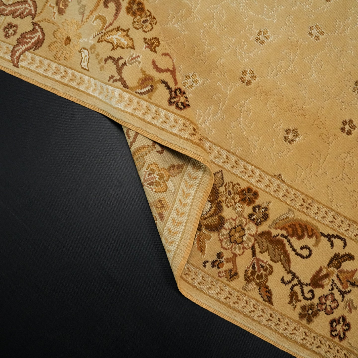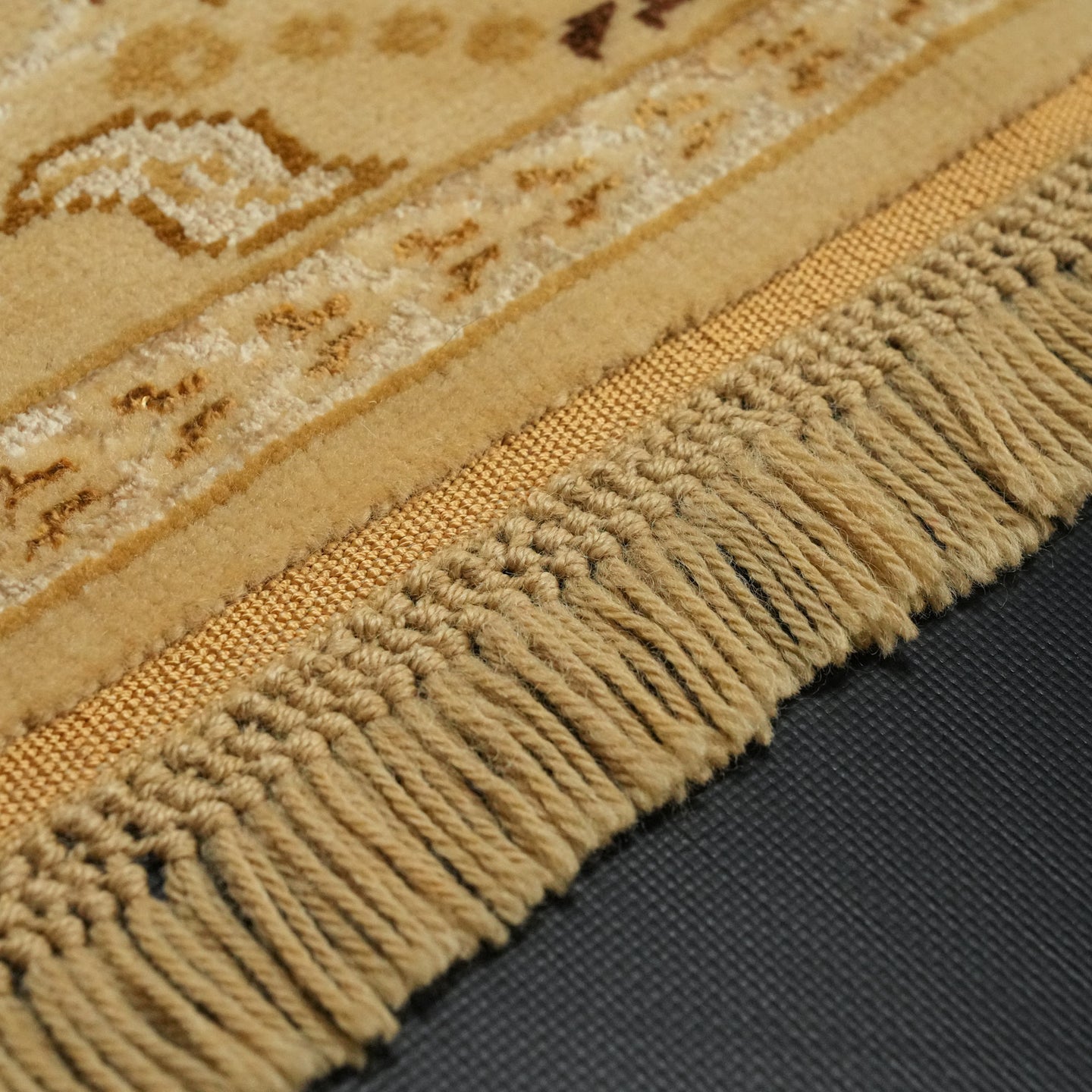 Sultan Serisi El Dokuma Bej Çiçek Desenli Halı, yün ve ipek ipliklerin uyumuyla hem yumuşak hem de uzun yıllar dayanıklı bir yapı sunar. Zemindeki yün dokunun mat görünümü, ipek motiflerin parıltısıyla dengelenerek desenleri ön plana çıkarır. Türkiye’de dokunan bu özel tasarım, geleneksel halıcılığın en nadide örneklerinden biri olarak kültürel bir değer taşır. Düğüm sıklığı ve işçiliğiyle fark yaratan Sultan Serisi, zamansız tasarımı sayesinde farklı dekorasyon stilleri için estetik bir tamamlayıcı olmaya devam eder.
