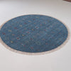 Urkum Serisi Otantik Desenli Mavi Yün Tezgah Dokuma Yuvarlak Halı