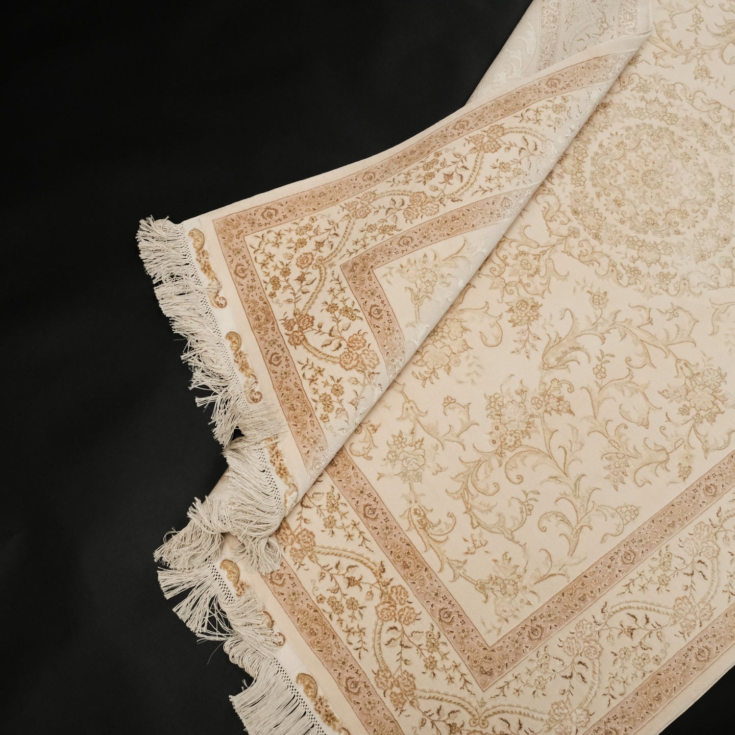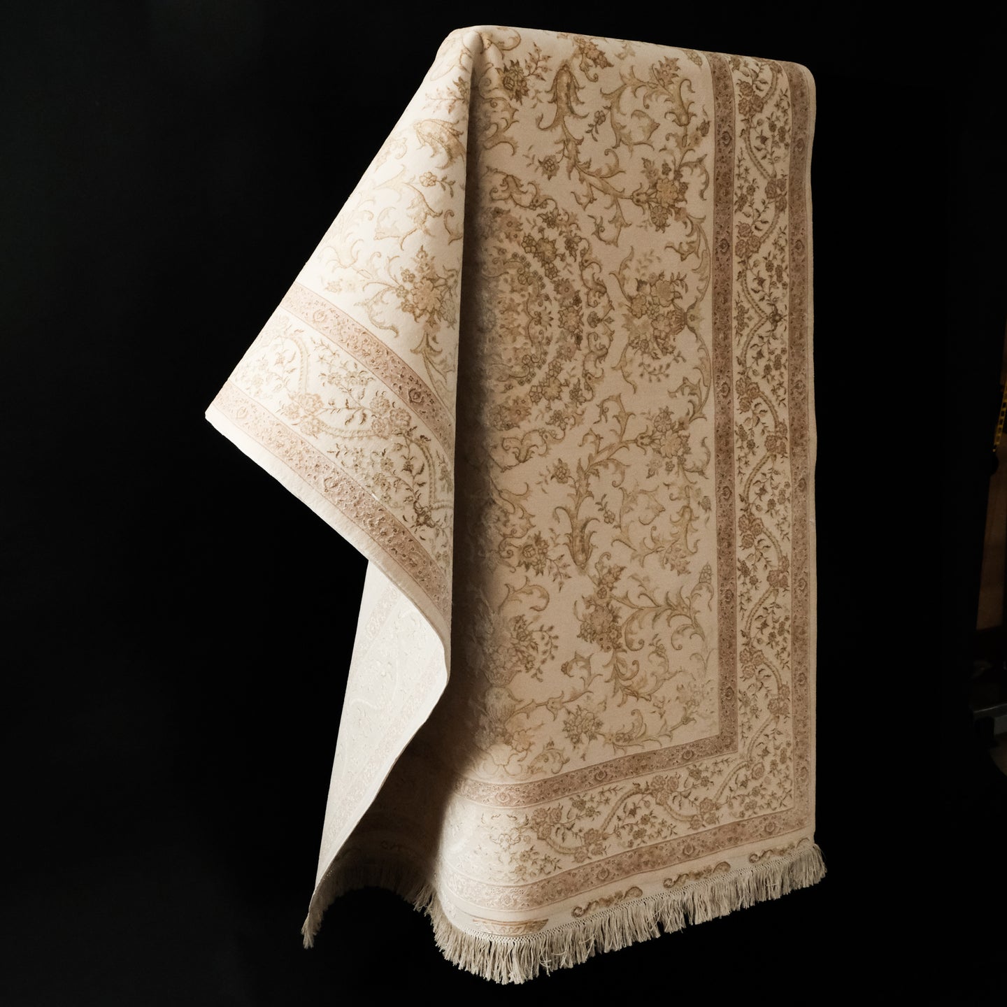 Nahar Serisi El Dokuma İpekli Halı, gelenekten aldığı ilhamla bugünün yaşam alanlarına zarafet taşır. Çin’deki usta eller tarafından %90 ipek, %10 yün iplikle dokunur. Sahip olduğu ipek ve yün oranları, ona hem ipeksi bir yumuşaklık hem de yıllara meydan okuyan bir sağlamlık kazandırır. Her ilmeğinde sabır ve ustalık gizlidir; öyle ki, üretimi artık mümkün olmayan bir zanaatkârlığın son örneklerinden biridir. Aylar süren emekle ortaya çıkan bu nadide işçilik, klasik motiflere gönül vermiş, el emeğini değerli bulanlar için kalıcı bir iz bırakır. Kullanıldığı mekânda sessizce kendini hissettirir; ne çok gösterişlidir ne de gölgede kalır.