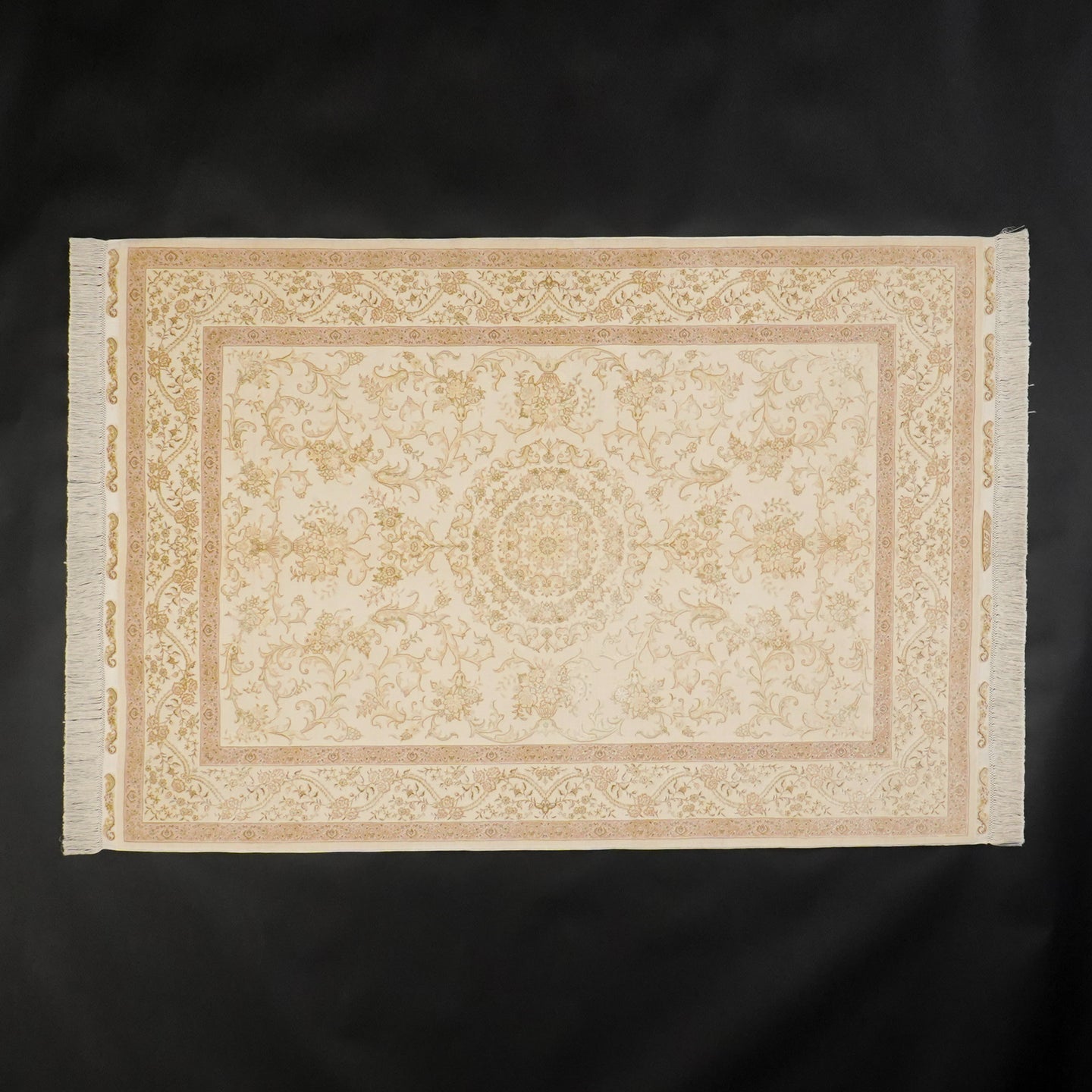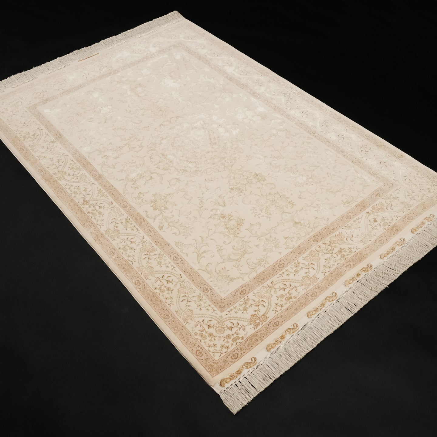 Nahar Serisi El Dokuma İpekli Halı, krem rengiyle iç mekânlara aydınlık ve sıcak bir hava kazandırır. Halının tam ortasında yer alan dairesel motif, bir çiçeğin iç içe açılan yapraklarını andırır; etrafını saran yaprak ve sarmaşık desenleriyle doğal bir uyum yakalar. 126 x 182 cm ölçüsüyle dar alanlara bile şıklık katarken, mobilyalar arasında yumuşak bir geçiş sağlar. Renk tonları dingin bir atmosfer yaratır, desenler ise her bakışta yeniden keşfedilir. Kendine özgü sadeliğiyle kalıcı bir etki bırakır.