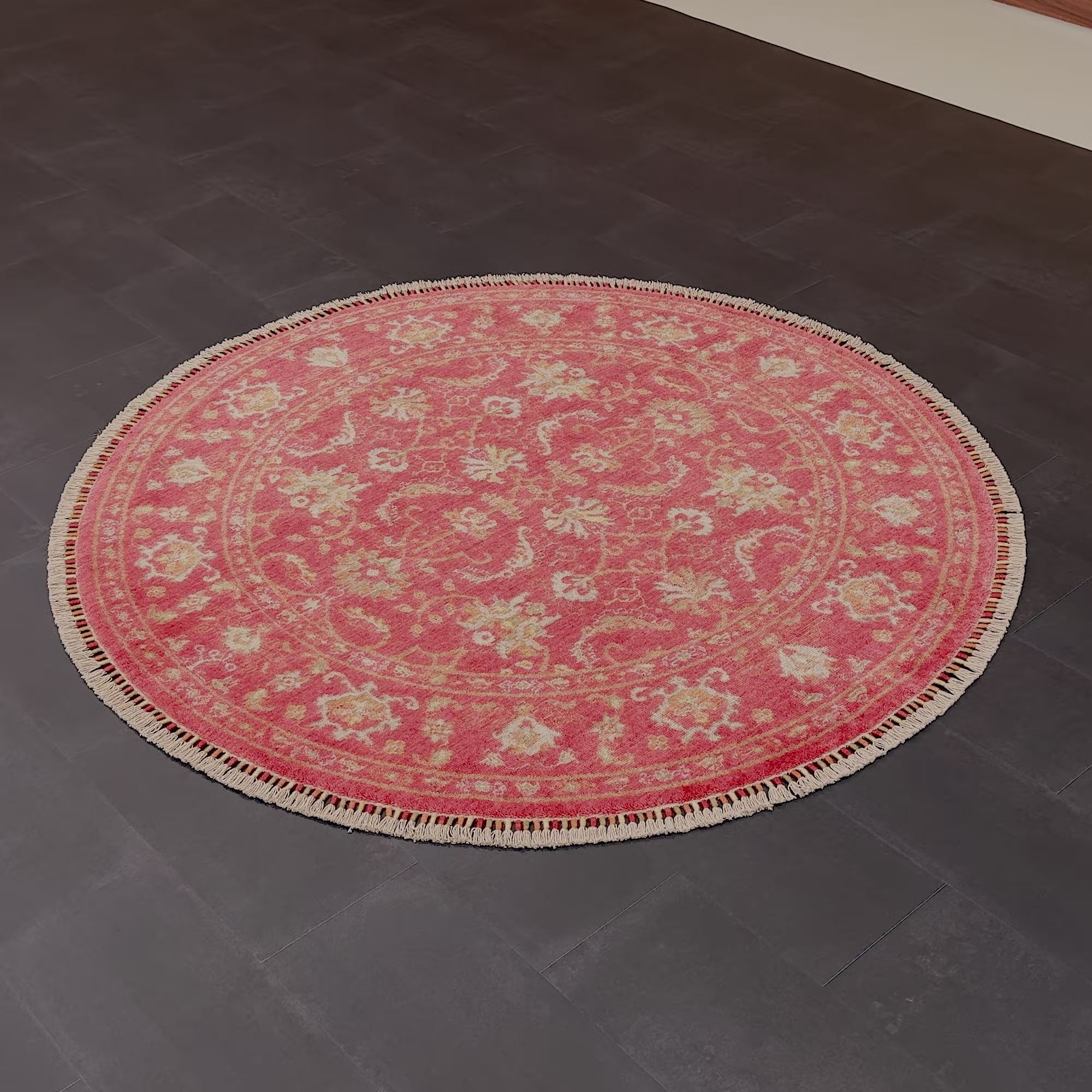 Zade Serisi Uşak Desenli Kırmızı Tencel Tezgah Dokuma Doğal Halı