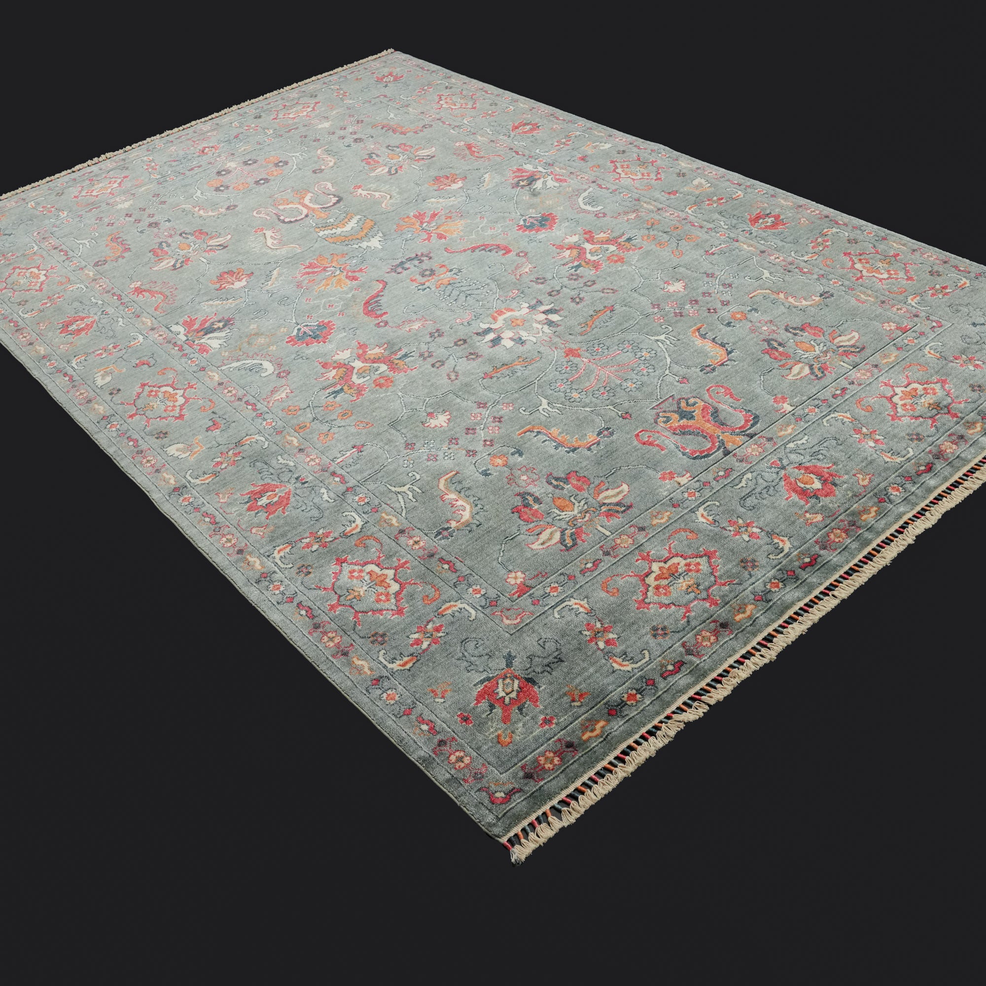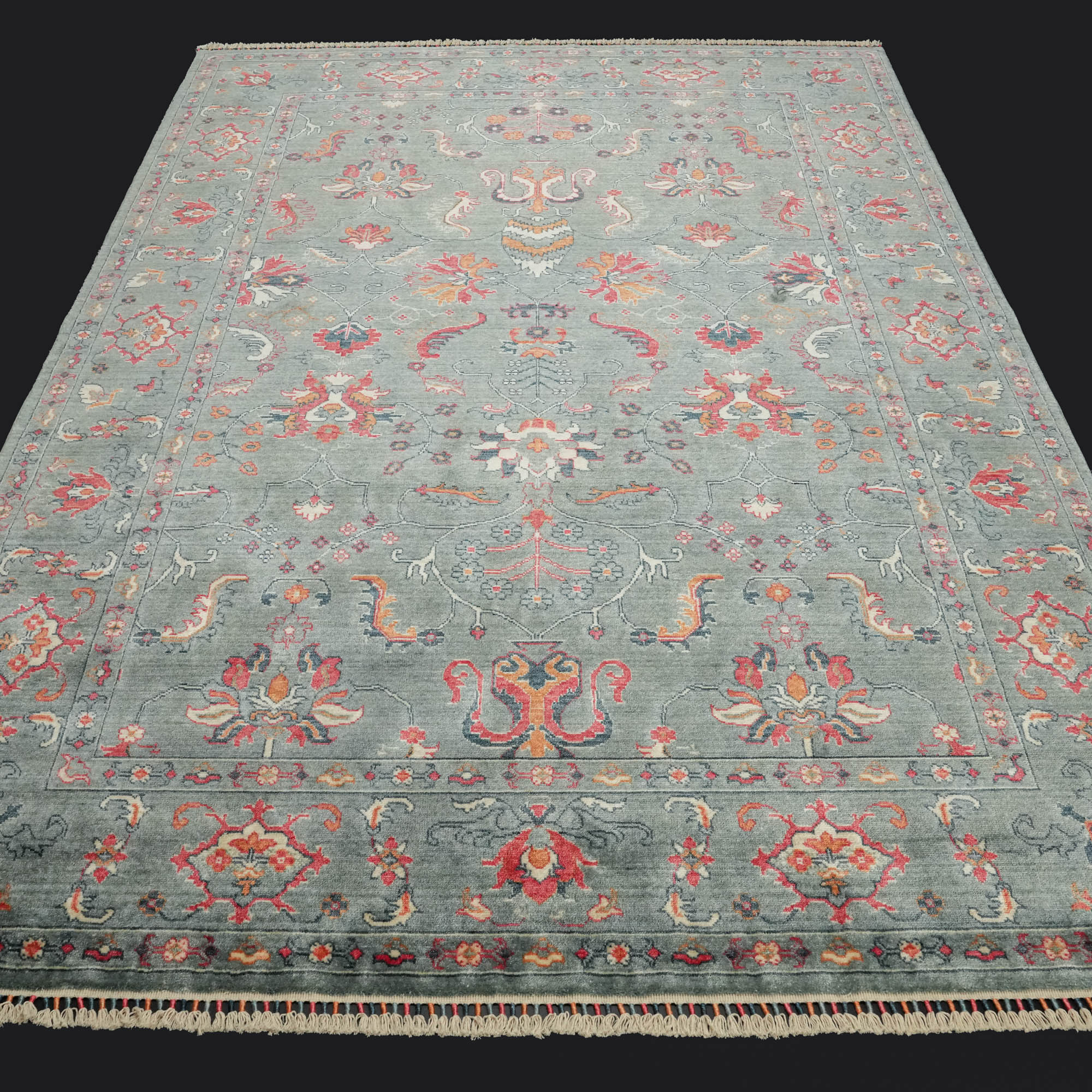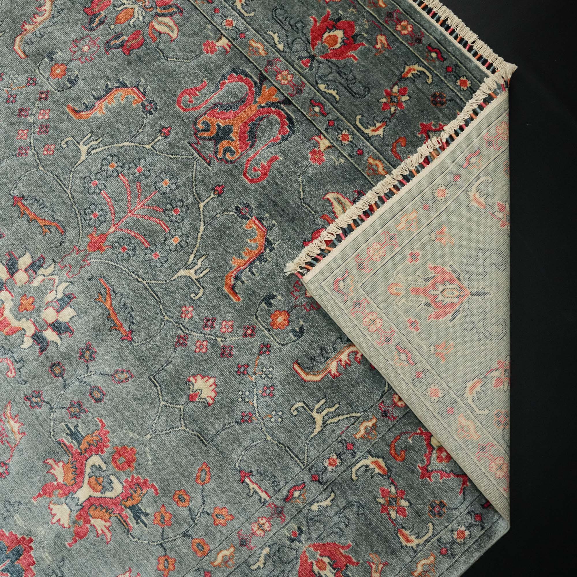 Zade Serisi Uşak Desenli Turkuaz Özel Tezgah Dokuması Doğal Halı