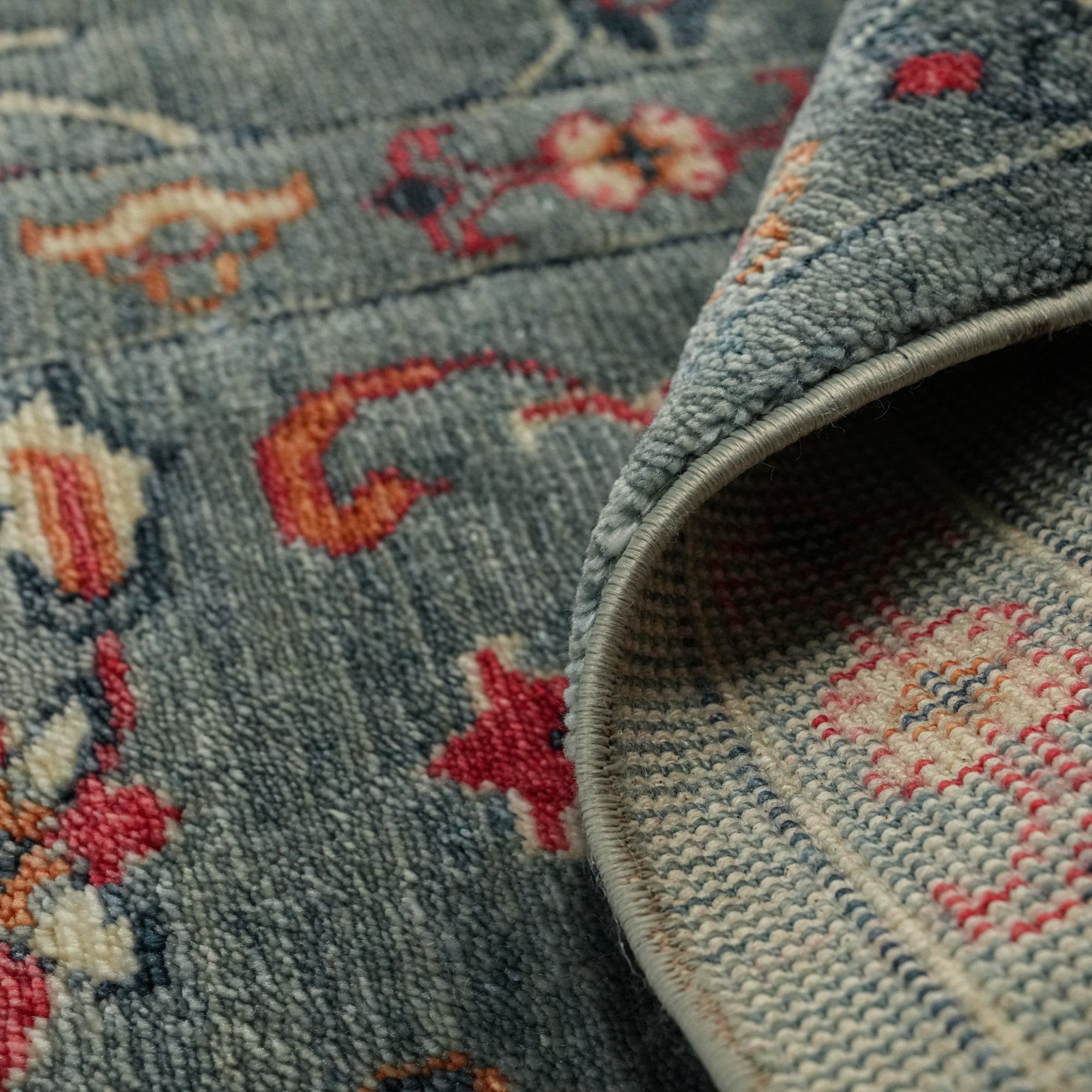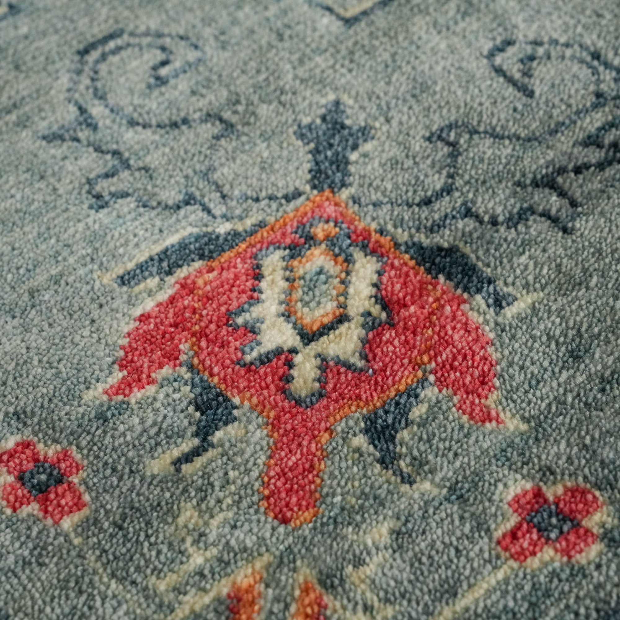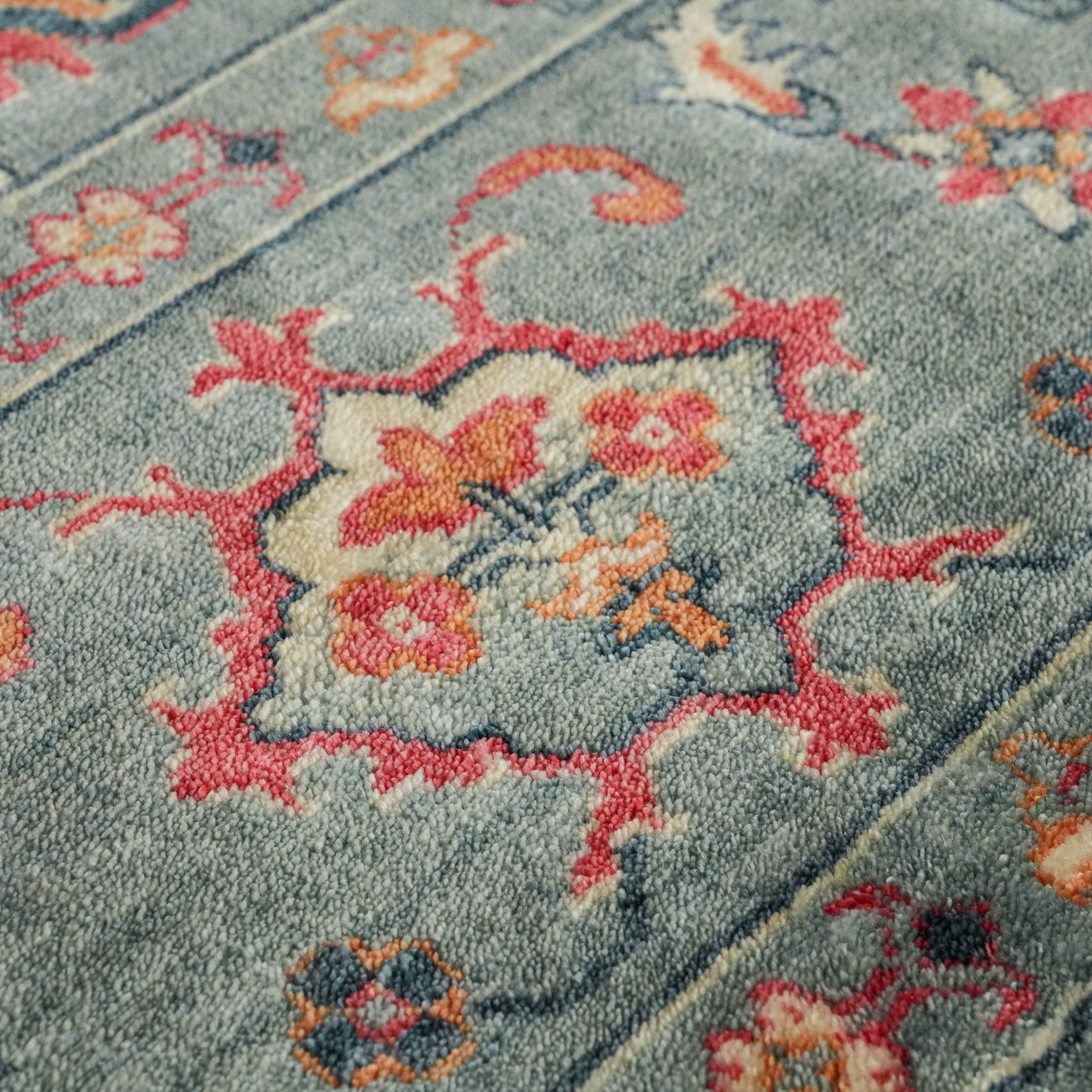 Zade Serisi Uşak Desenli Turkuaz Tezgah Dokuma Doğal Halı